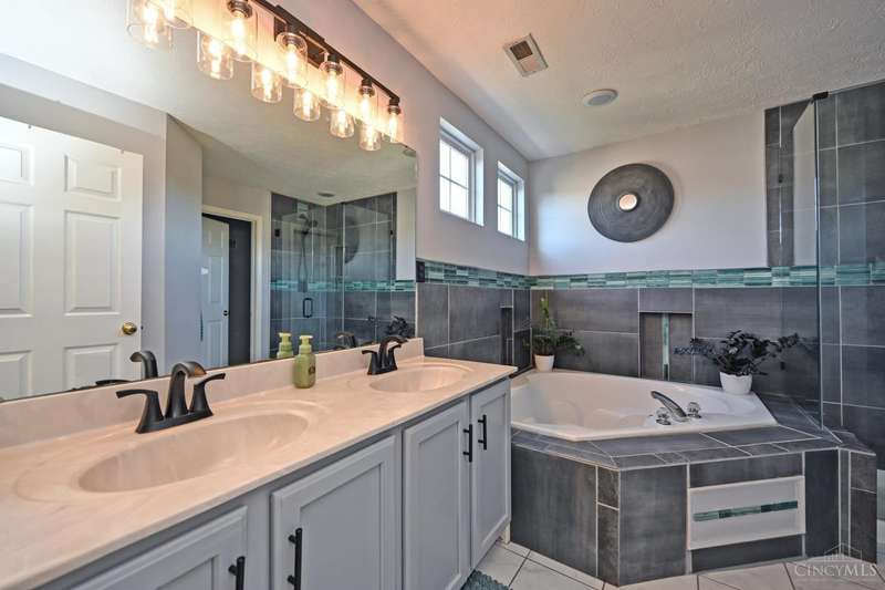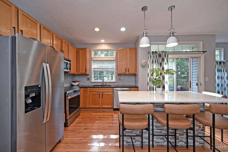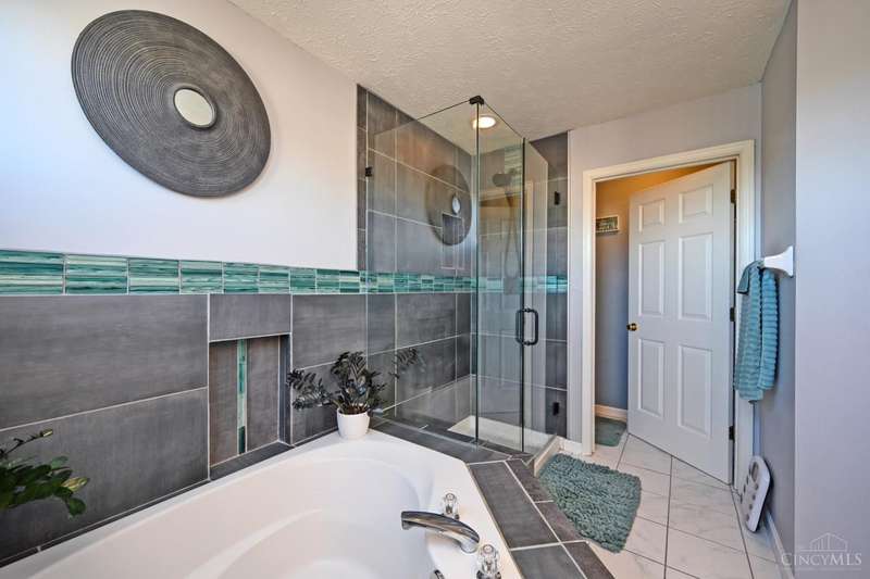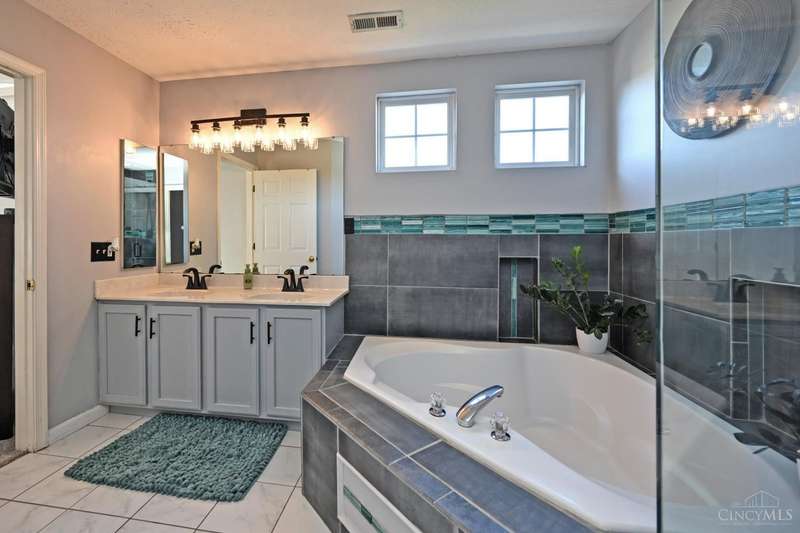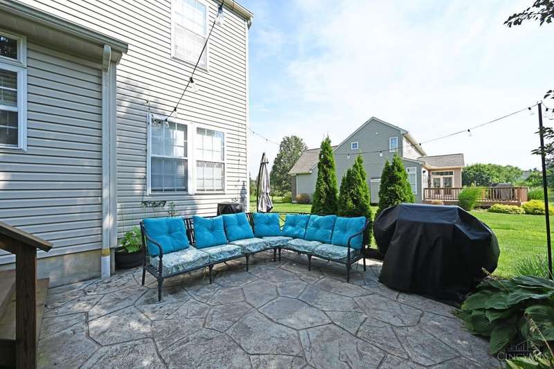 Beautiful turnkey home in Mitchell Farm! MANY updates on quiet cul-de-sac st! Kitchen updated '21 - all SS appliances, Fridge & Stove NEW in '25, pendant lighting over lg glass-tiled island w/overhang, plenty of seating space & added cabinets for extra storage, recessed lighting, contemporary frosted drs & walkout providing tons of natural light! FR updated '21 w/sleek porcelain flooring & travertine gas fireplace surround! 1st flr hardwd flrs refinished in '24! Primary bath updated '21 w/cool vibe custom tile decor, lg corner garden tub & sizeable glass enclosure shower! Neutral 2nd fl carpet in '22! Fin LL w/wet bar ready for recreation & entertaining! Step outside to spacious 0.39 acre lot w/lg backyard perfect for outdoor relaxation & gatherings, incl stamped patio w/string lights & expansive deck! NEW AC 9/23/25! Roof replaced '15! Preventative maintenance performed on all mechanicals & has sump pump w/back up! Community has sidewalks, pool, clubhouse, & playground for added fun