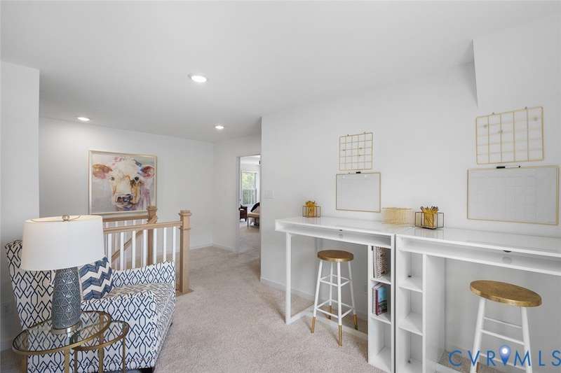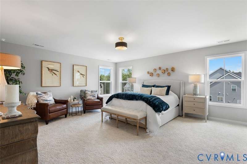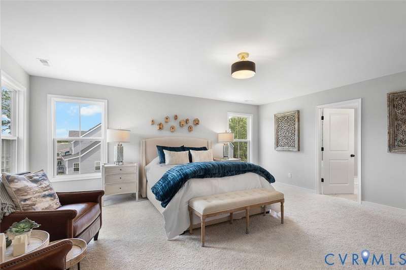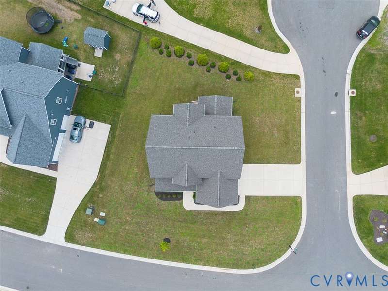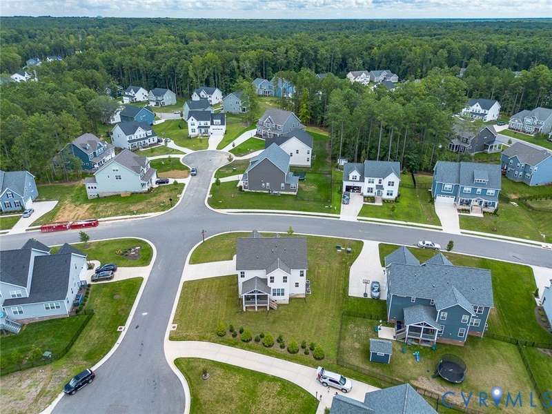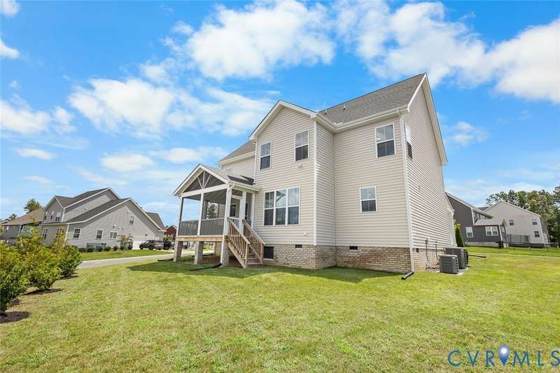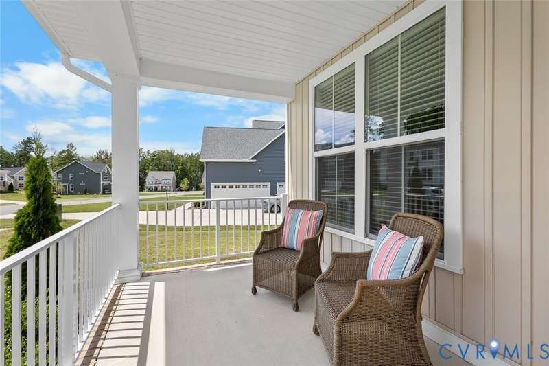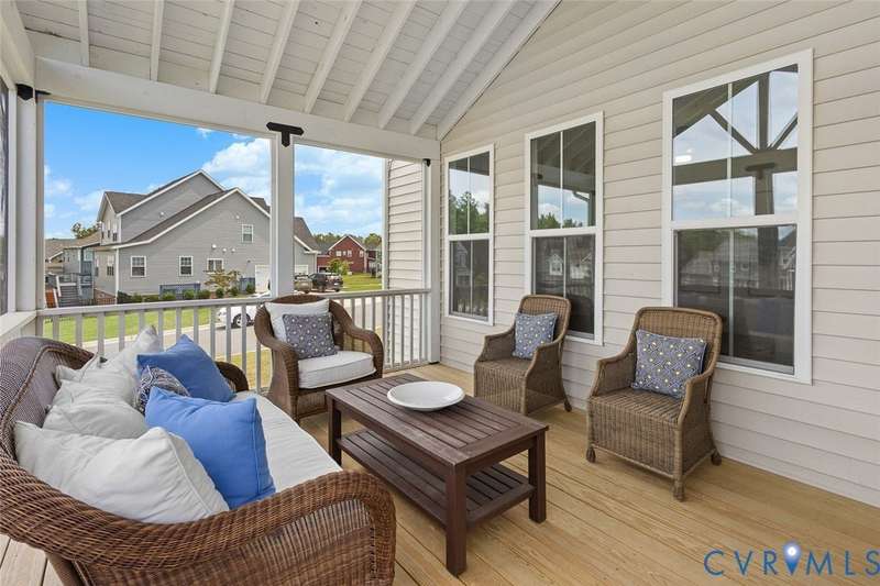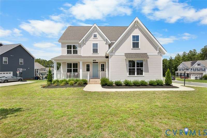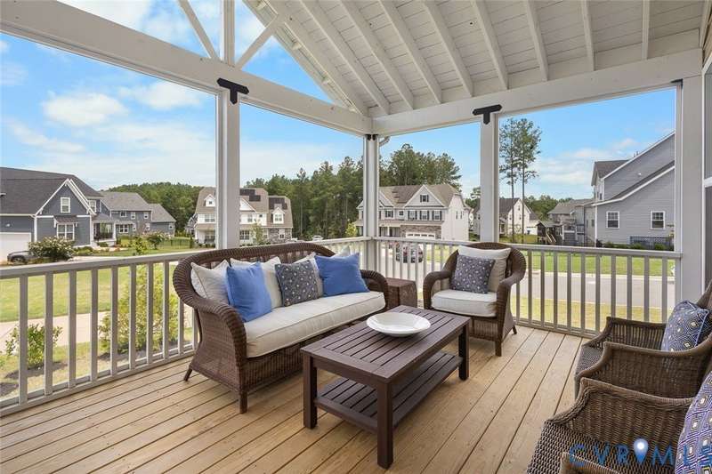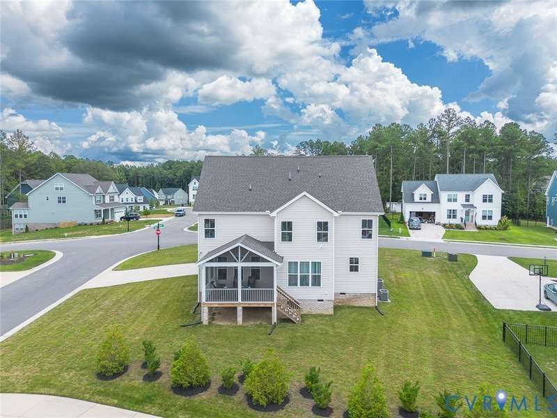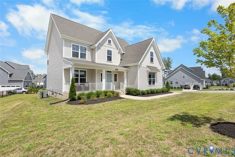 Welcome to this former model home, like new, gorgeous home in the highly sought-after Harpers Mill. First floor boasts 9+ ceilings, modern style engineered hardwood floors throughout & great natural light. From the moment you step into this home you feel the elegance & warmth. Nice sized foyer to welcome guests & a coat closet. An open flow plan with the kitchen, dining & living room creates a warm setting for entertaining & family! The kitchen boasts quartz countertops, Parry Blue Fish scale glossy ceramic tile back splash, a large center island with built-in seating area, shaker style cabinets, gas cooking, wall oven, built-in microwave & dining area that leads to the perfect screened porch! Enjoy the spacious living room with a cozy gas fireplace. A great mud room right off the garage is creates space for a drop zone when arriving home. The office/study on the front of the house is tucked away giving the needed seclusion to accomplish work or enjoy reading a book. Upstairs you will find all the bedrooms. The primary room is the perfect escape with luxurious carpet & plenty of space for a sitting area. The ensuite boasts a soaking tub, walk-in shower, with a glass surround & tile walls & floor. The double sink vanity is oversized giving plenty of storage & counter space. A private water closet. The walk-in closet is huge & also has that luxurious carpet, you will absolutely feel pampered! Three additional bedrooms with the same luxurious carpet, light fixtures & sufficient closet space. The third floor features a huge bonus room with a full bathroom. Don't miss the 2 EV plugs in the garage. The irrigation system will help keep your landscaping and grass looking good all year. Blue Ribbon Chesterfield schools, neighborhood amenities including pool, clubhouse, dog park, & amphitheater. Located near great shopping and dining on the Hull St Corridor. Absolutely a must see! It is completely move in ready and just waiting for you.