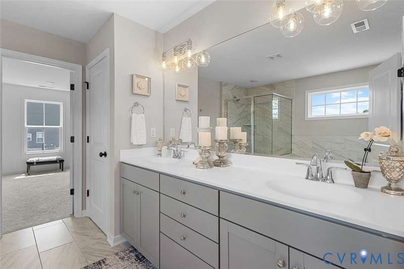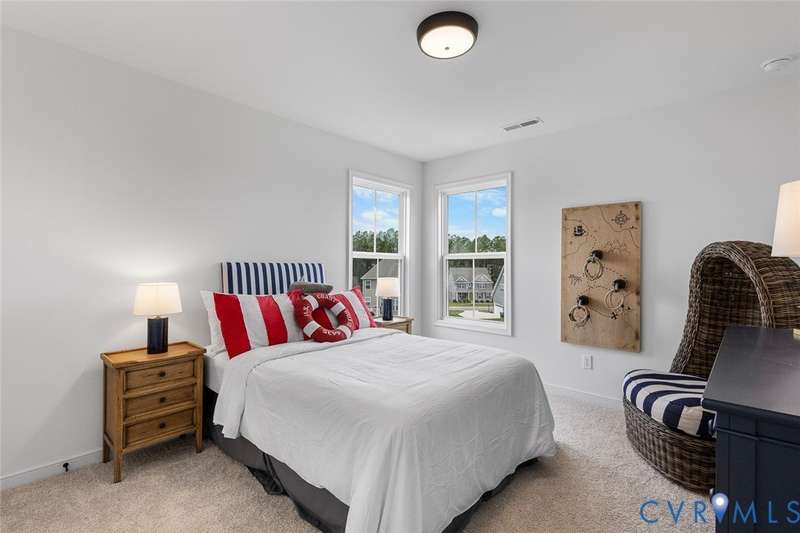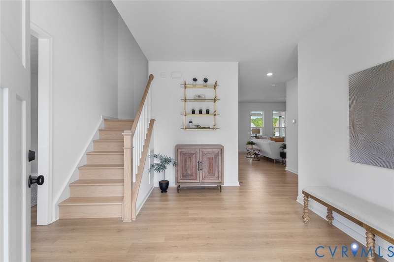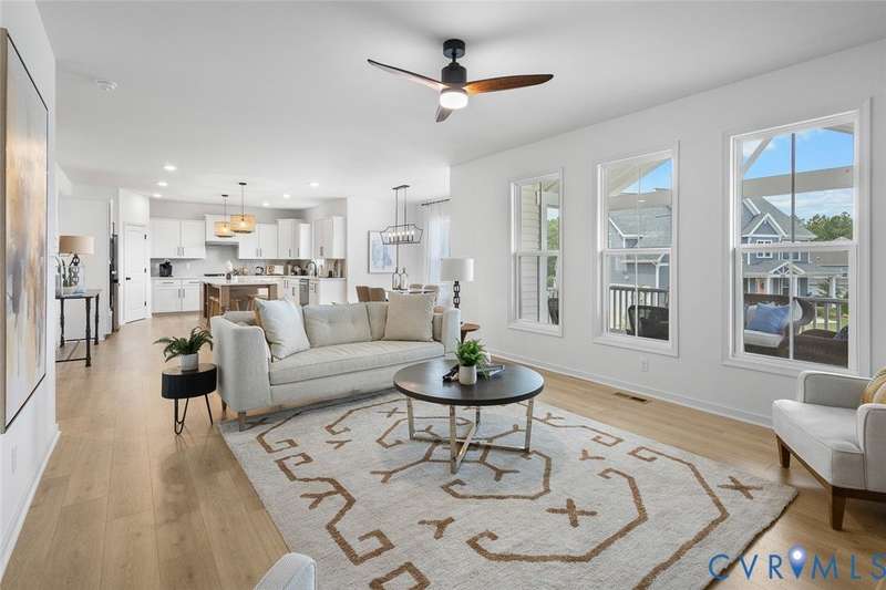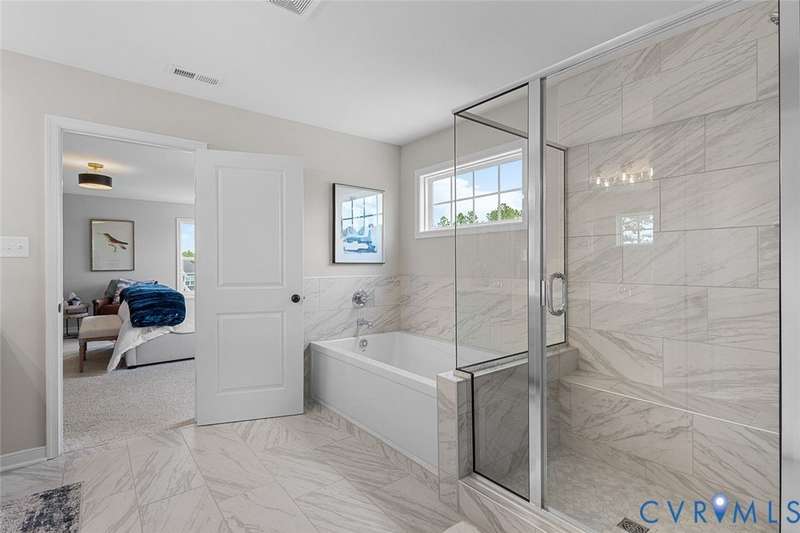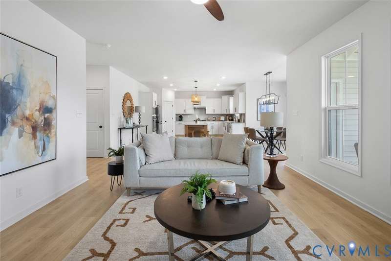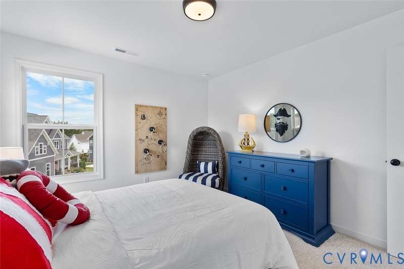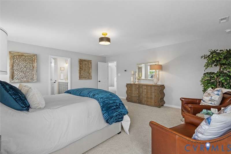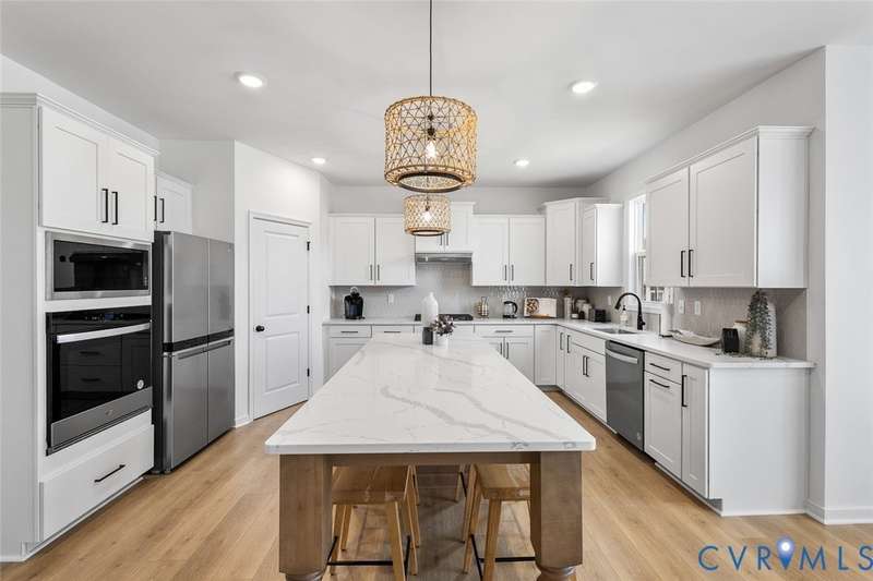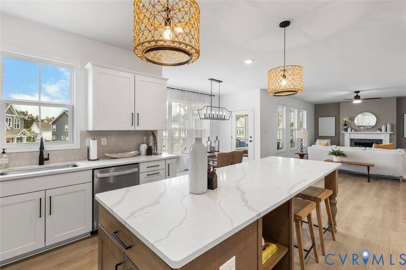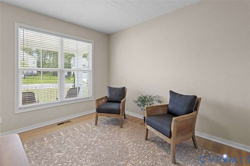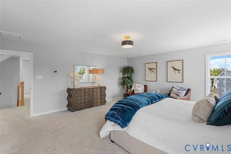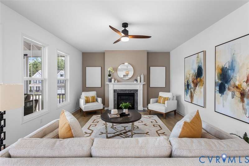 Welcome to this former model home, like new, gorgeous home in the highly sought-after Harpers Mill. First floor boasts 9+ ceilings, modern style engineered hardwood floors throughout & great natural light. From the moment you step into this home you feel the elegance & warmth. Nice sized foyer to welcome guests & a coat closet. An open flow plan with the kitchen, dining & living room creates a warm setting for entertaining & family! The kitchen boasts quartz countertops, Parry Blue Fish scale glossy ceramic tile back splash, a large center island with built-in seating area, shaker style cabinets, gas cooking, wall oven, built-in microwave & dining area that leads to the perfect screened porch! Enjoy the spacious living room with a cozy gas fireplace. A great mud room right off the garage is creates space for a drop zone when arriving home. The office/study on the front of the house is tucked away giving the needed seclusion to accomplish work or enjoy reading a book. Upstairs you will find all the bedrooms. The primary room is the perfect escape with luxurious carpet & plenty of space for a sitting area. The ensuite boasts a soaking tub, walk-in shower, with a glass surround & tile walls & floor. The double sink vanity is oversized giving plenty of storage & counter space. A private water closet. The walk-in closet is huge & also has that luxurious carpet, you will absolutely feel pampered! Three additional bedrooms with the same luxurious carpet, light fixtures & sufficient closet space. The third floor features a huge bonus room with a full bathroom. Don't miss the 2 EV plugs in the garage. The irrigation system will help keep your landscaping and grass looking good all year. Blue Ribbon Chesterfield schools, neighborhood amenities including pool, clubhouse, dog park, & amphitheater. Located near great shopping and dining on the Hull St Corridor. Absolutely a must see! It is completely move in ready and just waiting for you.