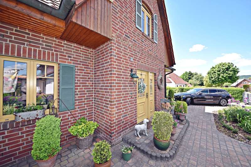 In one of the most sought-after and quietest residential areas of Rehren in the idyllic Auetal valley, this well-kept detached house is a real gem for discerning families or couples with high living standards. Built in 2003, the house not only impresses with its high-quality construction and a living space of approx. 142 m², but also with its spacious plot of approx. 760 m², which offers plenty of room for development. The stylish cast-iron fence with electric drive, gates and gate catches the eye as soon as you enter the property - a first indication of the sophisticated security features of the house. A modern alarm system, burglar-proof film on the windows, mushroom-head locks and a security locking system at the house and side entrances ensure an all-round secure living experience. Double-glazed windows also contribute to energy efficiency and sound insulation. The building is comprehensively insulated and heated by gas heating. This energy-efficient combination ensures a pleasant living climate with low operating costs. A wood-burning stove that meets the requirements of Stage 1 of the Federal Immission Control Ordinance provides additional warmth and comfort - without any additional filter measures and permanently without the need for a permit. The outdoor facilities leave nothing to be desired: A well-kept Bangkirai terrace with electric awning invites you to relax and linger. The garden is kept in good shape by a lawn robot, which is safely housed in a specially designed shelter. The offer is complemented by a practical carport and a separate workshop/storage room. Inside, the house also impresses with its well thought-out room layout. A modern guest WC with shower offers convenience for visitors or can be used as an additional shower facility. Provision has also been made for all eventualities: a permanently installed emergency power generator guarantees the functionality of the house even in the event of a power cut. The location rounds off this offer perfectly: the convenient transport links make both the commute to work and leisure activities in the surrounding area uncomplicated. All facilities for daily needs - from shopping facilities and doctors to schools and kindergartens - are in the immediate vicinity. This detached house in Rehren Auetal combines security, comfort and high-quality fittings in a quiet, mature residential area - a rare opportunity for anyone who appreciates stylish living in a prime location.