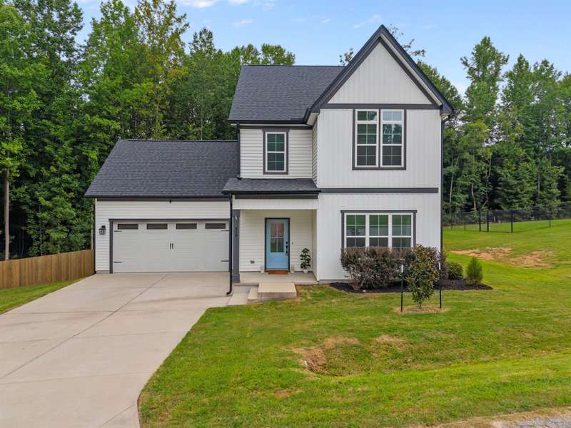 Walkable lifestyle, cafe's, boutiques, and Owl's Roost Brewery nearby. Downtown Franklinton offers, shops, eateries, and live music, all within a welcoming community full of charm and artistic spirit. This beautifully equipped home features a stunning kitchen with painted cabinetry, quartz countertops, stainless steel appliances, and a center island with sink and pendant lighting. Brand-new washer, dryer, and refrigerator all convey! Enjoy a large walk-in pantry with custom wood shelving and a coffee bar complete with quartz counter, floating shelving, shiplap and space for a mini fridge. The family room offers a cozy gas log fireplace with a stylish shiplap surround, built-in shelving, and a mantle. Sliding doors lead to a covered porch and a fully fenced backyard?perfect for pets and play?with a new privacy fence (2024) and a new shed added in 2023. Upstairs, the spacious primary suite features vaulted ceilings, a walk-in closet with wood shelving, and a luxurious spa like bath with a tiled walk-in shower, separate soaking tub, double vanity with quartz tops, and private water closet. Two additional bedrooms share a full bath, and there's a dedicated laundry room plus a large walk-in attic storage area. Whole House Carbon Filtration system (2024), Garage is EV Ready. This move-in-ready gem offers comfort, charm, and functionality?don't miss your chance to make it yours! Only 15 minute drive to Wake Forest.