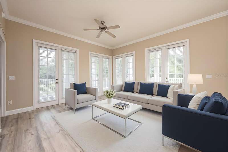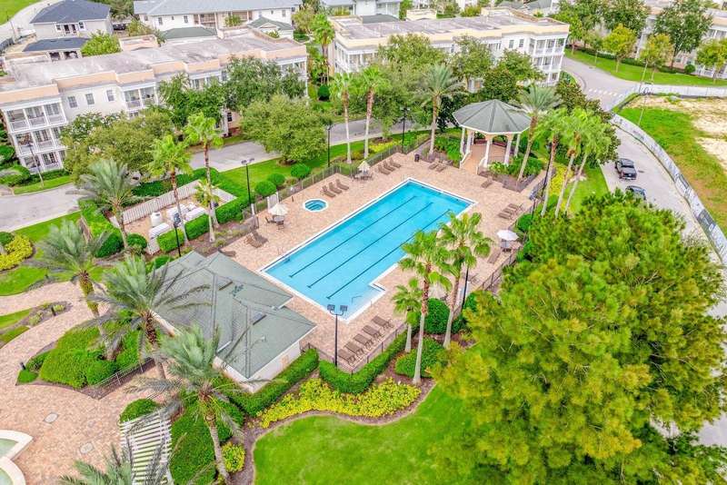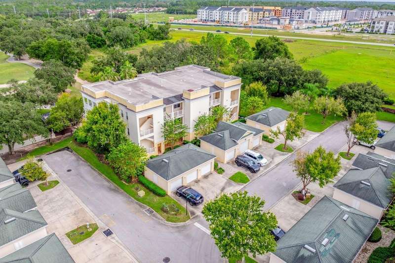 Ask about a lender provided RATE BUY-DOWN CREDIT on this home** Seller may consider buyer concessions if made in an offer** Welcome to your personal retreat in the heart of Reunion’s premier golf community - The Terraces! This gorgeous second floor condo captures the best of RESORT STYLE LIVING and effortless elegance, just MINUTES FROM DISNEY PARKS and Central Florida’s world-class attractions. Inside you will be greeted by a light, bright OPEN CONCEPT layout with TILE & LUXURY VINYL PLANK FLOORS throughout - no carpet here! Natural light pours in through four sets of French doors, leading to an expansive WRAP AROUND BALCONY with breathtaking GOLF COURSE VIEWS. Whether you are enjoying a morning cup of coffee or unwinding after a day at the parks, this balcony offers the perfect setting. The kitchen blends style and comfort with UPDATED STAINLESS STEEL APPLIANCES, newer fixtures, pantry storage, a BUILT-IN BREAKFAST NOOK surrounded by windows, and a breakfast bar that is ideal for casual dining or entertaining. Your PRIMARY SUITE is a true escape – complete with a decorative tray ceiling, crown molding (also in the main living!), a private en-suite bath, and an EXTENDED WALK-IN CLOSET. Pride of ownership shines throughout with thoughtful upgrades: Luxury vinyl plank flooring (2021), upgraded porch fans (2021), A/C compressor replaced (2022), and annual air duct and A/C maintenance, plus a dryer vent cleaning in (2024). The home also includes a 1-CAR GARAGE for dedicated parking with storage space, and GATED ACCESS for added peace of mind. Meticulously constructed to withstand Florida’s elements, this condo is ideal as a LOW MAINTENANCE primary residence or home away from home! The Terraces at Reunion offers residents a clubhouse, resort pools, fitness center, tennis courts, playground, dog park, on-site restaurants and so much more! The quarterly fee also covers an array of amenities so you can focus on living, not upkeep. With stunning views, an unbeatable location, and a MOVE IN READY condition, this is your chance to live the Reunion Resort lifestyle – luxurious, convenient, and absolutely unforgettable. There is so much to love – schedule your showing today and see why this one stands out!