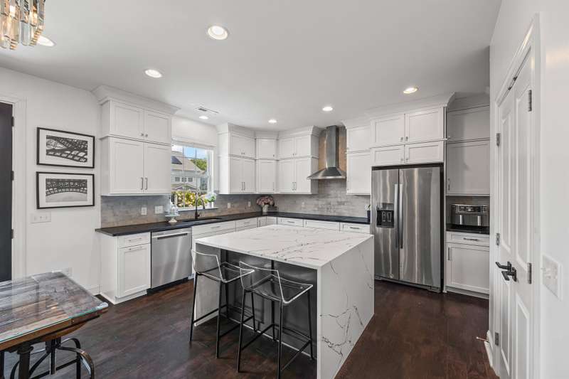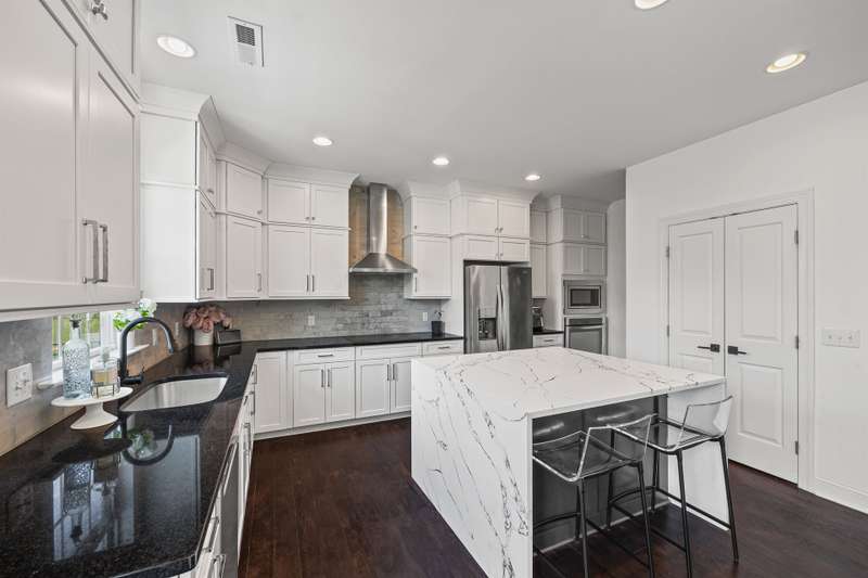 Stylish, spacious, and made for elegant living. From the fabulous curb appeal with in-ground irrigation to the amazing kitchen, every detail has been thoughtfully designed. Inside you will find your dream kitchen with a spectacular waterfall quartz island which opens to comfortable dining and living space-perfect for everyday moments and entertaining alike. Main floor bedroom and full bathroom, ideal for guests or flexible use. A dignified office with french doors makes a perfect work space. Upstairs step into your private retreat-an expansive primary bedroom with an airy layout and beautiful coffered ceiling creating a sense of calm and luxury. The impressive ensuite bathroom has an massive walk-in closet. Laundry room is conveniently located between the 4 bedrooms. The top floor versatile flex room w/ensuite bathroom offers endless possibilities-movie room, home gym, bedroom or playroom to suit your lifestyle. This home provides space, style, and location in one perfect package.