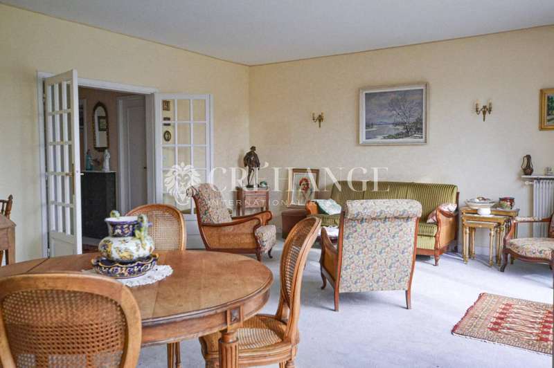 CROISSY-SUR-SEINE City center: located directly near the city center and in a quiet area, 92sqm apartment , 5 rooms, 3 bedrooms, located on the third floor of a 3-storey building and attic with elevator, within a maintained and secure condominium benefiting from a common outdoor space and a clear view of the Jonchère hill. The apartment benefits from two balconies, a cellar and a double closed box. It offers: a almost 4sqm entrance and independant toilets, a double 30 sqm reception room facing EAST and opening onto a 6sqm long balcony with a clear view of the Jonchère hill and the residence's garden , an independent 7sqm kitchen, accessible via a hallway with cupboard, two first bedrooms to the West with a surface area of 9.6sqm each, an independent 5sqm shower room and a master 12sqm bedroom to the east with cupboards and water point which can be converted into a private shower. A 6sqm cellar and a 38sqm box in the basement, accessible by the elevator, complete the property. Ideally located a stone's throw from the city center, in absolute calm and very bright, this regularly maintained family apartment however requires general renovation work, except for the frames which were recently changed. Les informations sur les risques auxquels ce bien est exposé sont disponibles sur le site Géorisques https://www.georisques