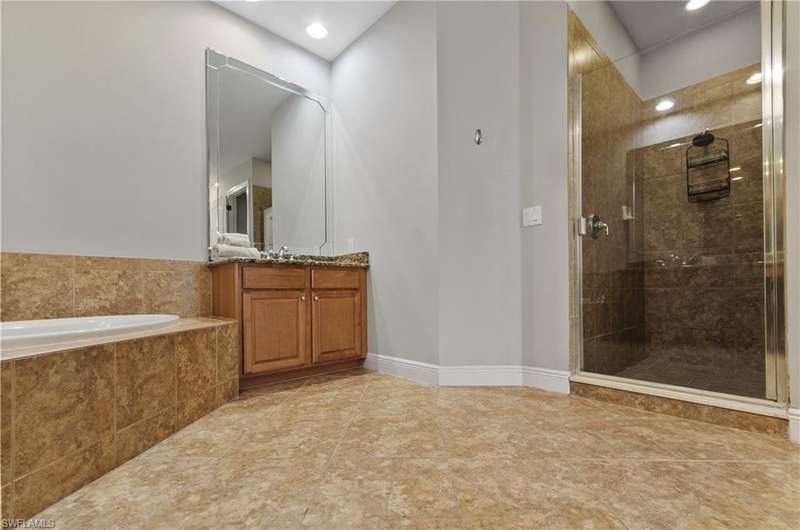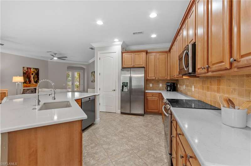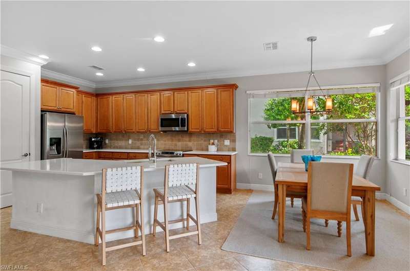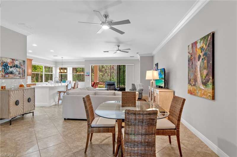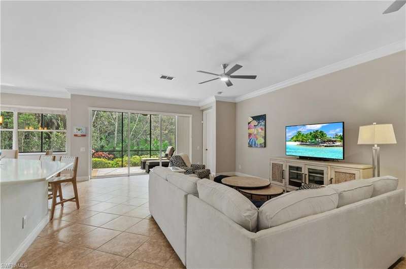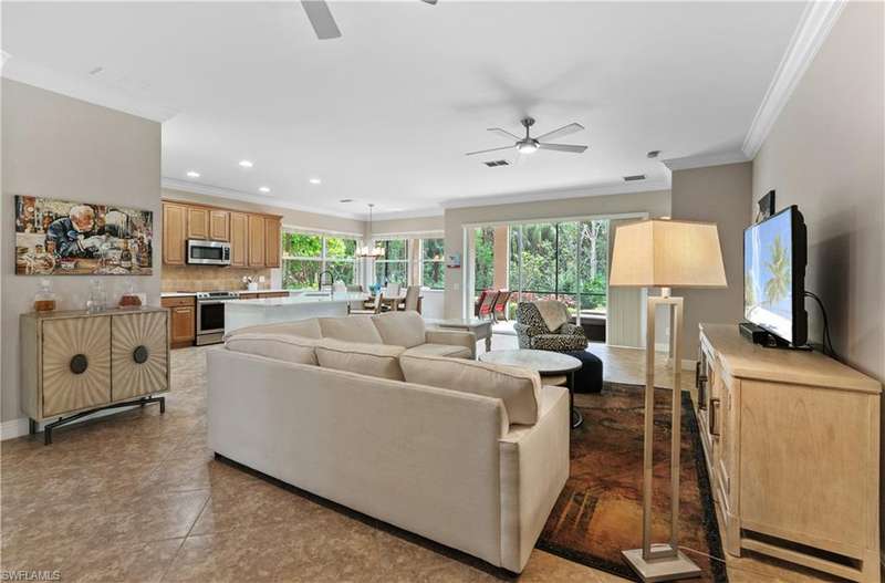 Step right into this TURNKEY coach home with bundled GOLF INCLUDED! This coveted first-floor Dolce floorplan offers 3 bedrooms, 2 baths, and a spacious 2-CAR GARAGE. Move in and start living your Southwest Florida dream lifestyle right away! The open design makes entertaining a breeze, while your private, screened lanai showcases private preserve and lake view. The primary suite is a retreat of its own, featuring two walk-in closets and ample space for king-sized furniture, leading to a luxurious bath with an oversized soaking tub, separate shower, and dual vanities. With a split-bedroom layout, your guests enjoy added privacy perfect for hosting friends and family. Take advantage of the fantastic community pool and embrace the wealth of amenities including access to the golf course, golf practice facility, tennis courts, bocce, fitness center, clubhouse lifestyle area with pool and poolside service, as well as the Taverna bar/restaurant. The main club house boasts outside terrace dini