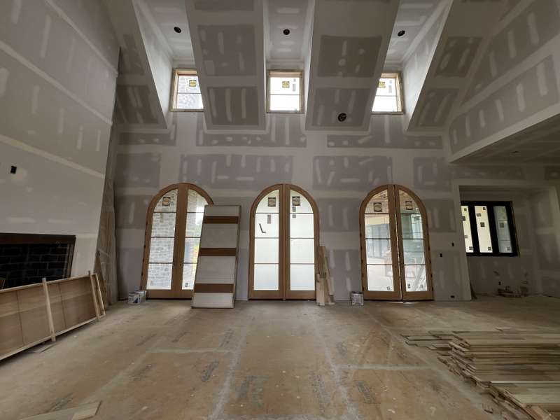 This custom luxury home by award-winning Arnold Homes is a masterpiece of elegance and functionality. A covered porch with an iron swing door welcomes you into an expanded foyer, which flows seamlessly into the open living and dining areas. Three sets of double doors provide breathtaking views of the rear covered porch, pool, and putting green. Designed for the ultimate culinary experience, the chef's kitchen is complemented by a spacious Martha Stewart-inspired scullery. The opulent primary suite features a walk-around bar, a private office, and a dedicated massage room with a sauna. A breakfast terrace connects to a combined laundry and office space, offering added convenience. Perfect for entertaining, the covered porch is outfitted with a hibachi grill, pizza oven, and built-in grill with a vented hood. The main-level media and billiards room, which has access to a full bath, can also serve as a pool bath. Additionally, a connected poker room offers a private covered porch. Skylights flood the rear hallway with natural light, enhancing the ambiance of the space. The spa-like primary bath boasts a walk-through shower, separate his-and-hers vanities, private water closets, custom walk-in closets, and access to a stackable laundry. Upstairs, four additional bedrooms each feature en-suite baths, along with a separate walk-in laundry area for convenience. A dedicated podcast room near the bonus room includes built-in bunk beds and access to a large storage space. Car enthusiasts will appreciate the five-car garage with high ceilings, allowing for car lifts. Nestled on a private cul-de-sac street, this estate is surrounded by lush trees and features a luxurious pool, spa, and putting green--offering a resort-like experience at home.