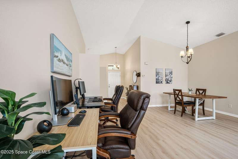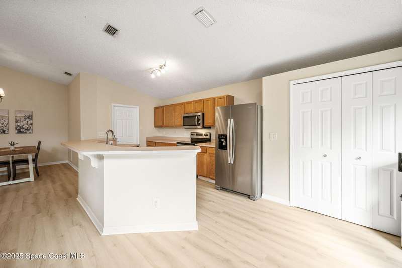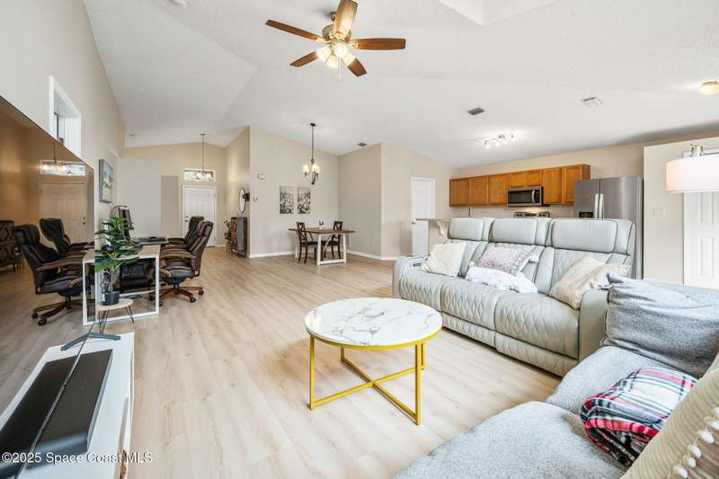 Nestled on a generous corner lot parcel in a highly desirable Titusville neighborhood, this beautifully updated 3BD/2BA home offers comfort, style, and smart upgrades...all in an excellent location made for easy commuting! Property Highlights... - Luxurious vinyl plank flooring gives the home a fresh, modern look - Brand new HVAC system (2025) ensures efficient comfort for years to come - Interior freshly repainted in 2022, creating a clean, welcoming canvas - New roof over installed in 2021, eliminating a major future expense - New appliances installed in 2024, making the kitchen move-in ready - 2-car garage + fenced backyard provides both practical parking and privacy - Corner lot with a huge side yard; rare and inviting space for gardening, play, or expansion The home features a split-bedroom floorplan that offers privacy and flow. The open living/dining area is perfect for gathering, entertaining, or simply relaxing.