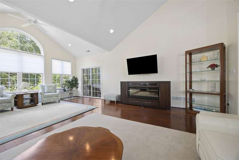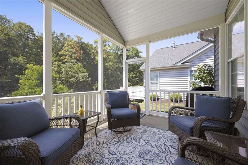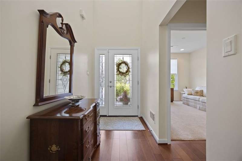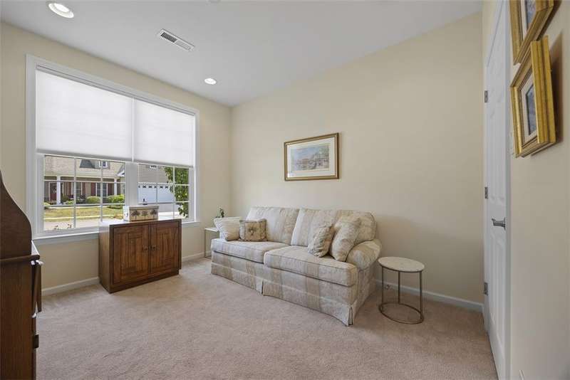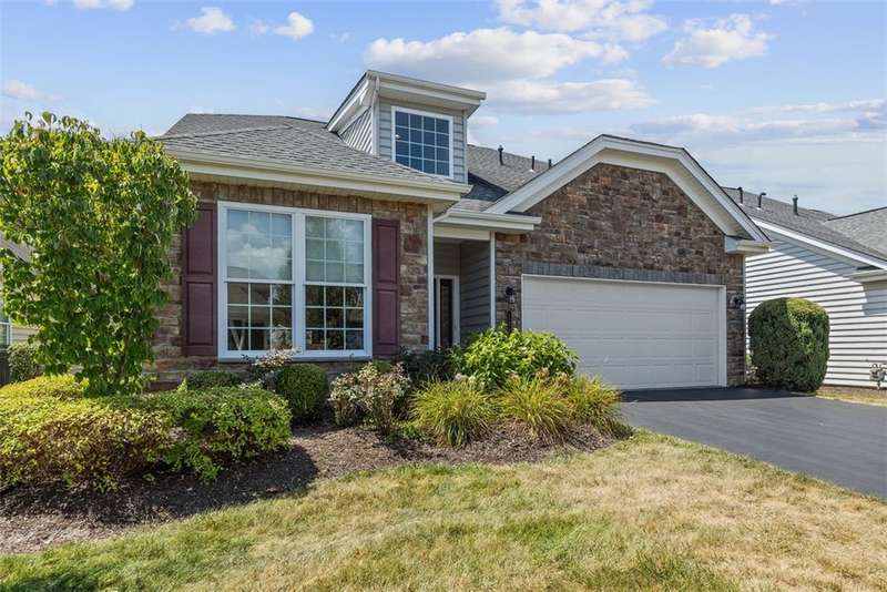 Enjoy spectacular wooded views only available on the coveted outside edge of Sewickley Ridge; a premier 55+patio home community offering resort style living. This 3 bedroom Betsy Ross floor plan features upgrades galore-from the gleaming hardwood floors throughout much of the main level to the quartz countertops in the kitchen and bathrooms to the large sunroom with wall of windows incorporated into the back of the greatroom. With two bedrooms on the main floor ( the second bedroom is currently used as a den) one level living is assured, but when guests arrive, there is a spacious bedroom, full bath and large, open loft upstairs. As a bonus, the sellers finished a 12x11 room on the second level that is perfect for a walk-in closet, exercise studio or craft room. Throughout the home, closet space and storage is outstanding.From the epoxy flooring in the attached garage to the upgraded cherry kitchen and screened porch overlooking the private backyard, this home stands out from the pack!