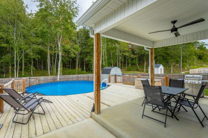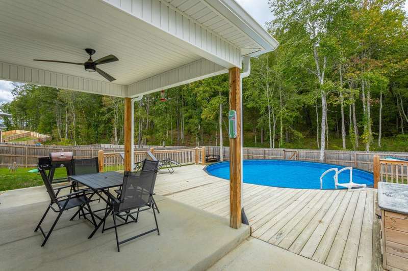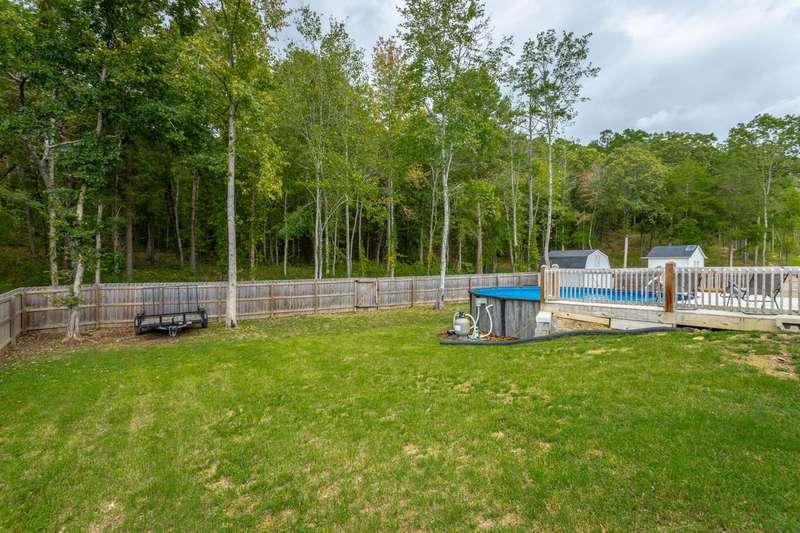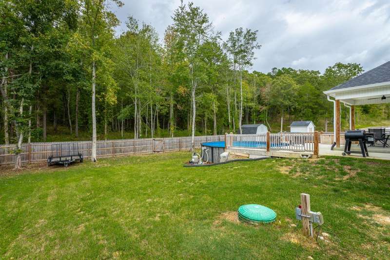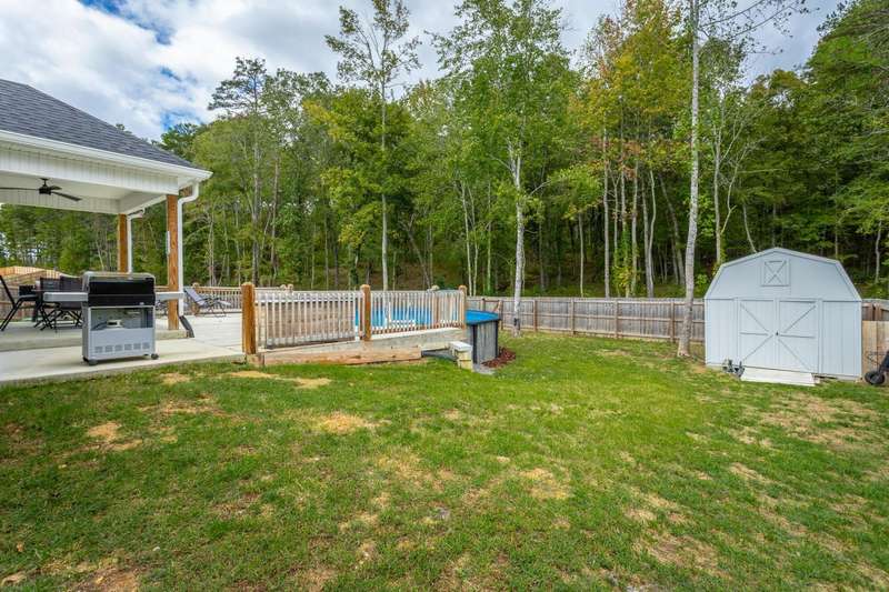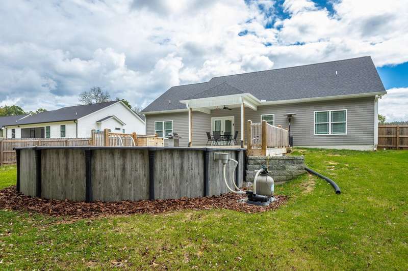 Welcome to the charming ambiance of this custom-built home. This house boasts three bedrooms and two bathrooms on the main level, with a bonus room and full bath on the second level. The interior features a neutral color palette, creating a serene and inviting atmosphere. Step outside to the covered patio and fenced backyard, complete with an above-ground swimming pool and storage building for your enjoyment. The property extends deep into the woods, sitting on a spacious 1.41-acre lot. A long driveway and oversized garage provide ample space for larger vehicles and toys. This house is eagerly waiting for you to make it your home. Please note the poured concrete pad that was added after the original pictures.