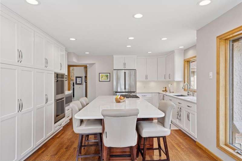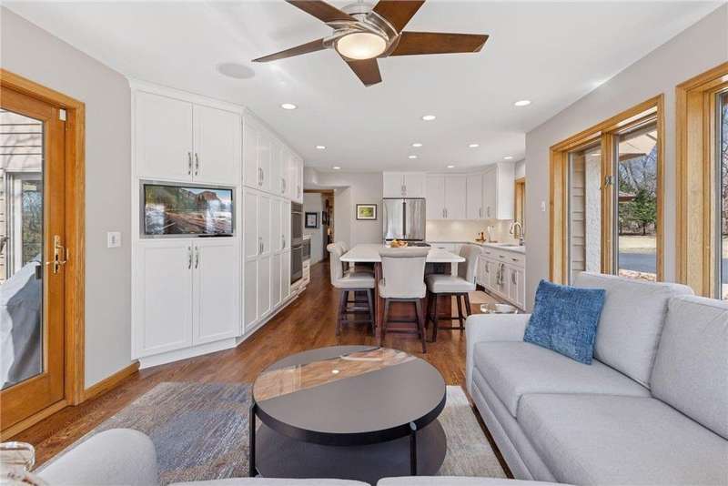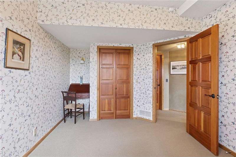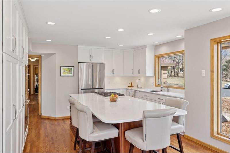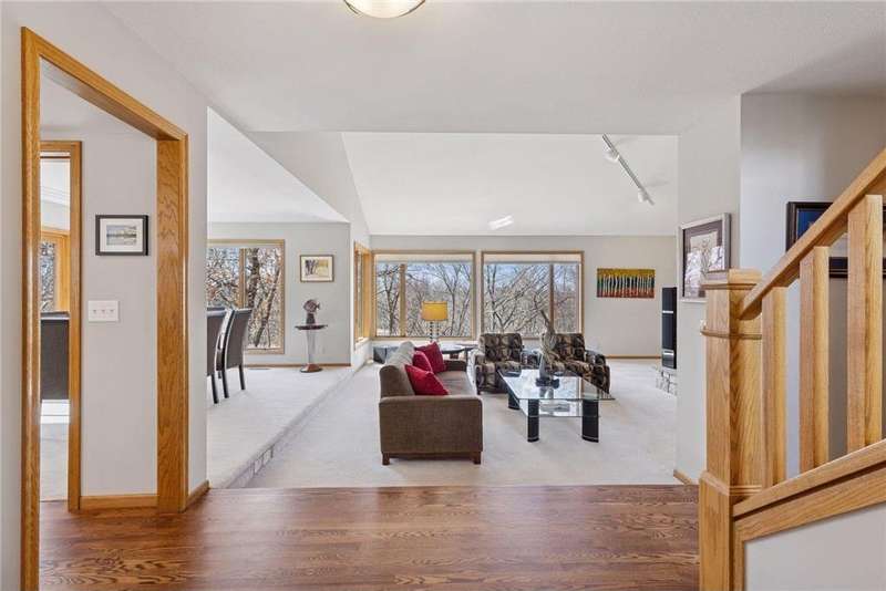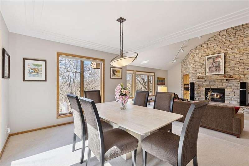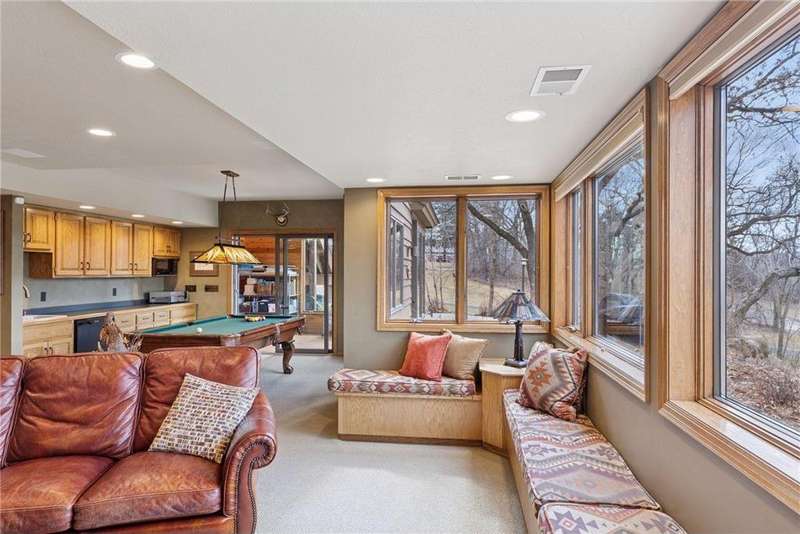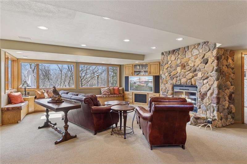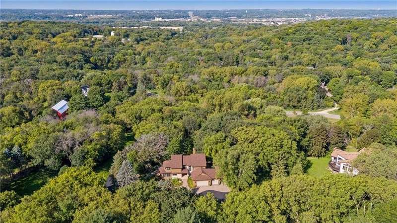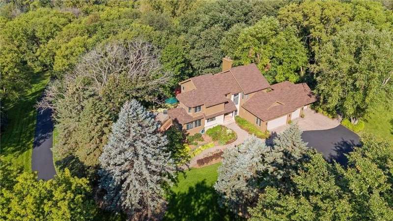 Nestled among the trees, on just over 2.6 acres, you will enjoy the quiet tranquility of this gorgeous 5-bedroom, 4-bath home. Beautifully landscaped and meticulously cared for, the owners have done extensive remodeling of interior and exterior completed March-Sept 2023, including new roof, new deck systems, freshly painted exterior, new wolf kitchen appliances including upscale kitchen cabinetry, and newly installed security system including 4 surveillance cameras. A mound septic system was installed in 2025. You will fall in love the moment you set eyes on this breathtaking property. Enter into a lovely open floorplan filled with multiple windows that engulf the home in natural light. Step down into the vaulted living room & feast your eyes on to see he grand floor-to-ceiling double sided stone wood-burning fireplace. An informal dining room leads to the maintenance-free deck and backyard oasis, including a magnificent stone paver walkway surrounding the home and multiple patios to enjoy the beauty of nature that surrounds you. Spend summer nights roasting s’mores around the firepit. The newly renovated gourmet kitchen offers Corian quartz countertops, decorative tile backsplash, stainless-steel appliances including a Wolf double oven and cooktop, ample cupboard and counter space, and an oversized island to die for! Cozy up with a cup of coffee in the bright breakfast nook. Appreciate the modern lighting, fixtures, and refinished wood floors. A comfy office warmed by a wood burning fireplace and a sizable laundry room complete the space. The upper-level primary highlights built-in cabinetry, a charming sitting nook, a balcony, a private bath with two vanities, a walk-in shower, and a luxurious jetted soaker tub. Stroll through an intimate office space on your way to two additional bedrooms and a full bath. The lower level is primed for entertainment, with a sizable great room featuring a stunning stone wood-burning fireplace, a built-in entertainment center, and bench seating with hidden storage. Gather your friends around the wet bar and grab a bottle of wine from the cellar, which holds up to 200 bottles. Bask in the picturesque view from the sunroom and delight in two additional bedrooms, a full bath, and a soothing sauna. An attached three-car garage with access to an additional 1-stall garage affords plenty of storage space. Appreciate the newly installed security system including 4 surveillance cameras, for your peace of mind. The home inspection has been completed for you. See supplements for photos, tour, Matterport Floorplan, and more.