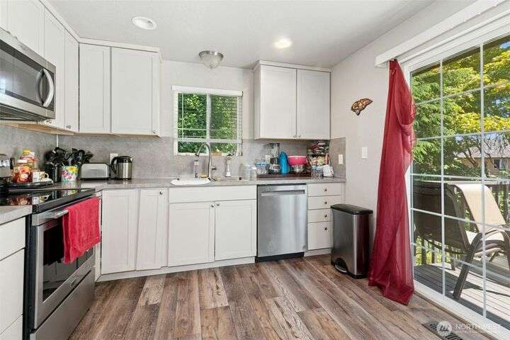 Opportunity knocks – clean classic Everett duplex w/ long term tenants & current income of $3,375/month & $40.5k/year w/ 0% vacancy! Built in 1979, this well-maintained duplex totals 2,200 SF on a spacious 11,326 SF corner lot that backs to a quiet cul-de-sac. 944 SF & 1256 SF units have 2 & 3 BDs (respectively) & 1.5 BAs, kitchen w/ eating space & light-filled living room. Lightly treed, fenced & sunny backyard w/ deck. 2nd deck space at the front. Updated unit includes newer appliances, paint & flooring & 1-car garage w/ extra storage & driveway parking. Located on a quiet street, just mins to Paine Field, Boeing, I-5, Hwy 99 & Everett Mall. Great Mukilteo School District. Don’t miss this terrific investment opportunity!