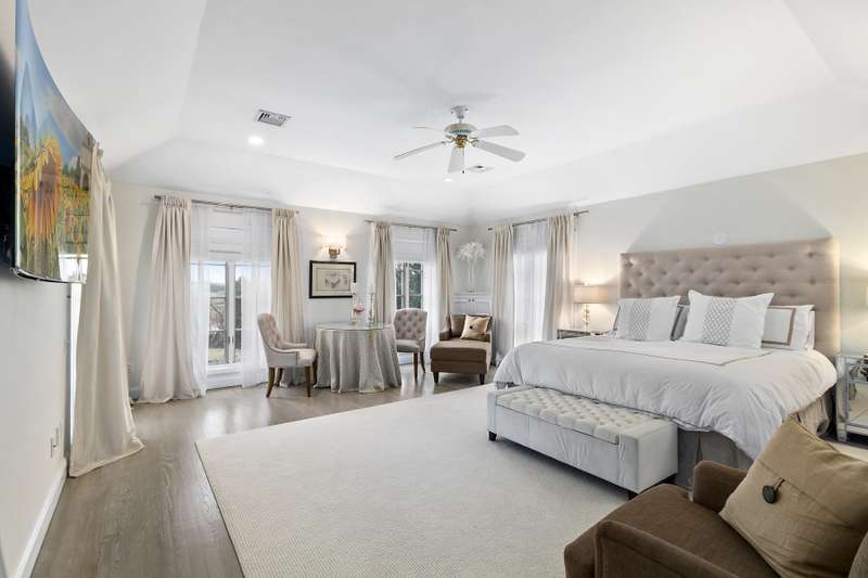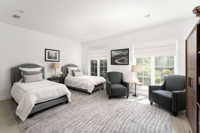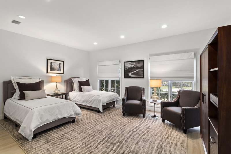 This beautiful private Mediterranean style sun filled 8,000 square-feet of living space, west oriented pond front with great sunsets over tranquil waters is located in coveted Estate Section of Southampton Village. House has been totally renovated to the highest standards. The interior renovation features grey hardwood floors throughout, brand new top of the line kitchen including professional chef 6 burning viking stove, hood and grill plus double ovens, double dishwasher, ice maker, wine cooler and subzero refrigerator; the all brand new white kitchen also includes a eat-in dining and casual seating TV family room with fireplace and french doors leading to the magnificent mature landscaping grounds and outdoor terraces, as well as to the 25x50 heated waterside gunite pool, sunken har-tru tennis and bocce courts. The 6 bedrooms 5.5 baths have been also totally renovated plus, each bedroom has new flat tv's. Enjoy total privacy at the superb 1,200 sqft Primary Suite with a unique state of the art just upgraded and redone 360 sq ft primary bath with his and hers separate vanities and an 8ft shower including 2 showers heads. Additional features are formal dining room, cathedral ceilings formal living room with fireplace, library/den, finished lower level with gym, pool table and media TV room area including extra bedroom and full bath with private entrance. This house has it all!! Available July or August 2026 Listing ID:735665