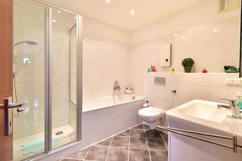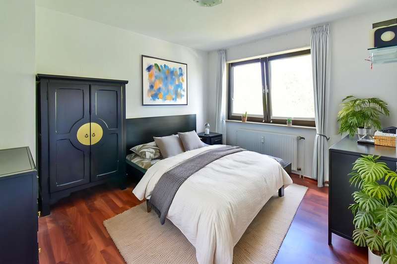 Exclusive maisonette apartment in Duisburg-Großenbaum - your perfect home between nature and comfort Discover this gem of modern living in one of Duisburg's most sought-after locations! This modernized maisonette apartment extends over two light-flooded floors and combines stylish design with a practical layout. On the fifth floor, you are greeted by a spacious living/cooking area that impresses with its open-plan design and warm real wood parquet flooring. The high-quality fitted kitchen with NEFF appliances makes the heart of amateur chefs beat faster, while the adjoining covered loggia invites you to linger in any weather. The guest WC rounds off the offer on this floor. One floor below, three spacious bedrooms and a modern bathroom with a comfortable combination of bathtub and shower await you. Particularly practical: all windows are fitted with shutters to provide perfect privacy and sun protection. A small room under the stairs offers practical storage space. The house itself impresses with numerous amenities: An elevator makes transporting groceries a breeze, while the covered parking space safely accommodates your car. In the basement, you will not only find plenty of storage space in your own cellar room, but also a practical laundry and drying room as well as a bicycle cellar. Outside, a well-tended communal garden with barbecue area awaits you - the ideal place for summer evenings with friends and family. Children will love their own playground while you enjoy the tranquillity of the surrounding nature. The location couldn't be more charming: Just a few steps separate you from the forest, the 6-lake plateau and the picturesque Dickelsbach. Yet you are still very well connected - shopping facilities, schools and restaurants as well as the S-Bahn can be reached just as quickly as the highway for commuters. With the modernization carried out in 2025, including roof renovation and green roof package, you will receive an energy efficiency class D property in which all important investments have already been made. This apartment is more than just four walls - it is a lifestyle. Whether as a family home, a capital investment or a comfortable home of your own, here you will find everything you need for a sophisticated home. Don't miss this rare opportunity! Arrange a viewing appointment today and see this special residential offer for yourself.