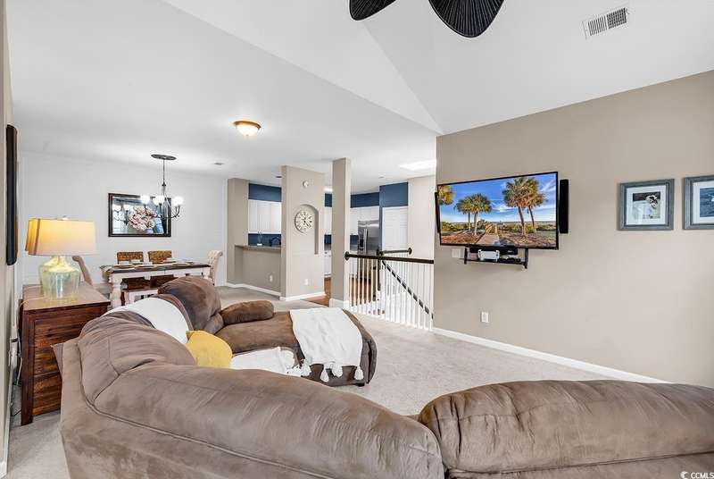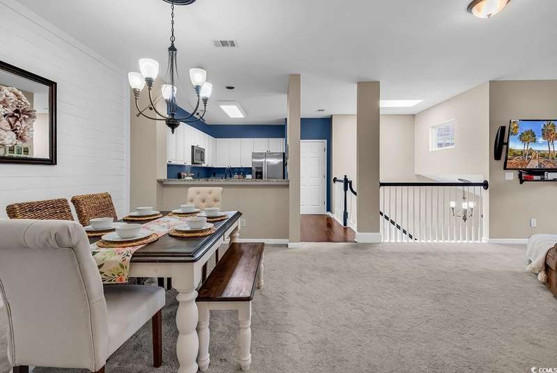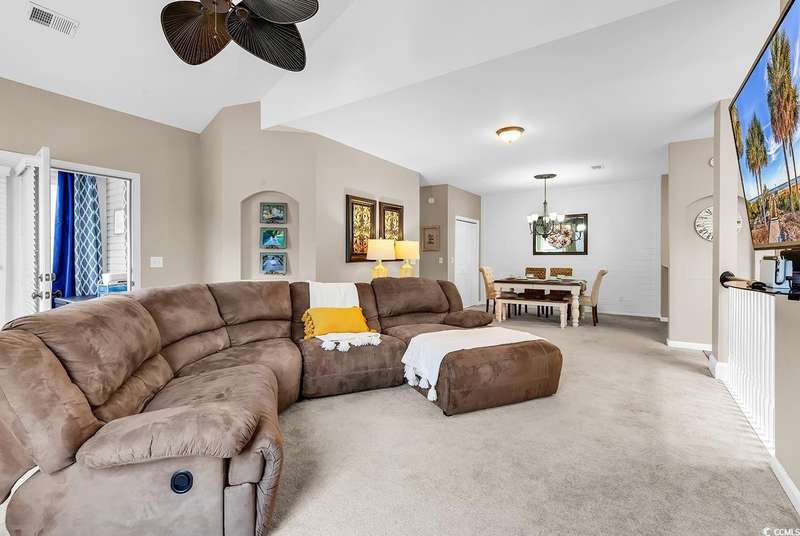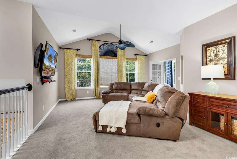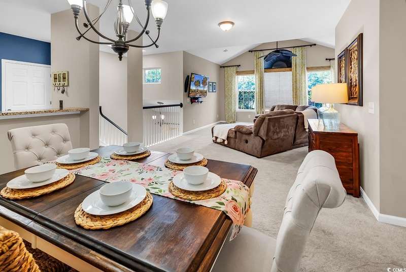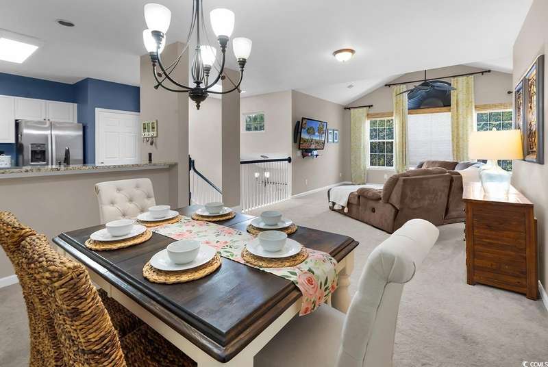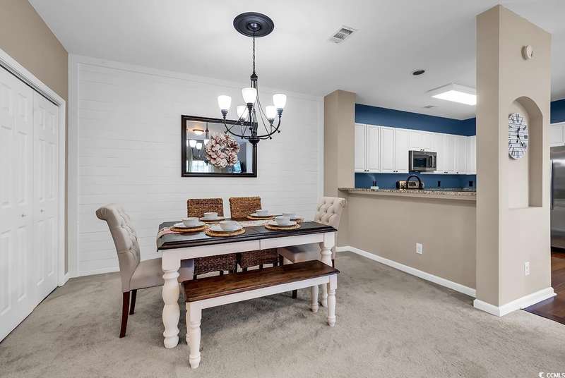 This beautifully updated condo in the highly sought-after, gated Wachesaw Plantation East offers an exceptional opportunity to enjoy both comfort and tranquility in a prime location. As you step inside, you’ll be welcomed by a small foyer with additional closet space, followed by stairs leading to the spacious living area. Once you reach the top, you'll appreciate the open floor plan, where the kitchen flows seamlessly into the living and dining areas—creating a bright, inviting space perfect for both daily living and entertaining. The primary bedroom is a true retreat, complete with a large walk-in closet and an en-suite bathroom featuring a handicap-accessible shower for added convenience and comfort. From the living room, you can step into the serene Carolina Room—an ideal space to sip your morning coffee, relax, or simply enjoy the fresh air while taking in the peaceful surroundings. Outside, the common area behind the condo provides the perfect setting for unwinding. Whether you’re gathering around the fireplace, grilling up a meal, or watching golfers approach the 9th green of the Wachesaw East Golf Course, this space invites relaxation and enjoyment. Living in Wachesaw Plantation East means you’re part of a quiet, gated community offering walking and biking trails, tennis and pickleball courts, and a resort-style pool and fitness center. Plus, the location provides easy access to the beach, Murrells Inlet Marsh Walk, and all the dining, entertainment, and shopping the Grand Strand has to offer. Whether you’re seeking a full-time residence or a peaceful vacation retreat, this condo offers the ideal blend of comfort, convenience, and community.