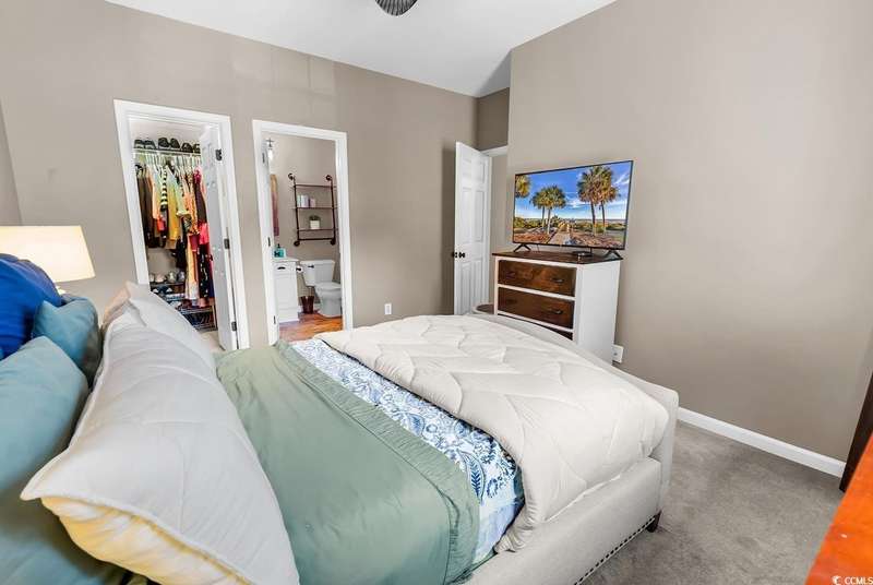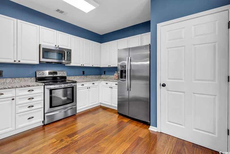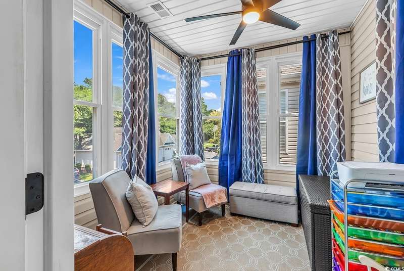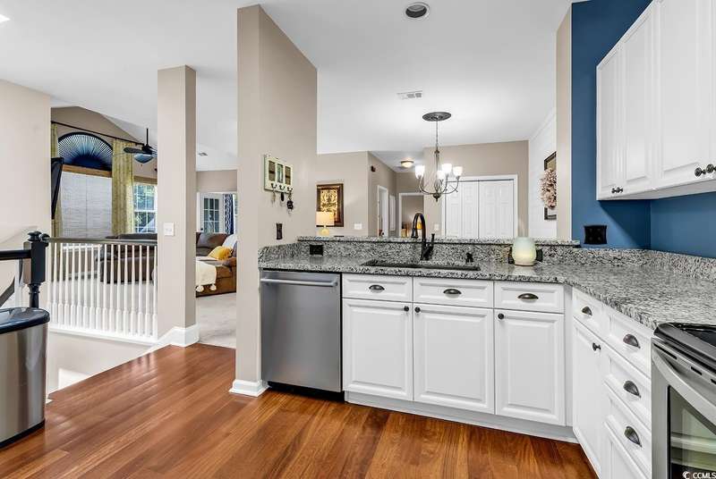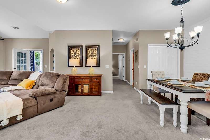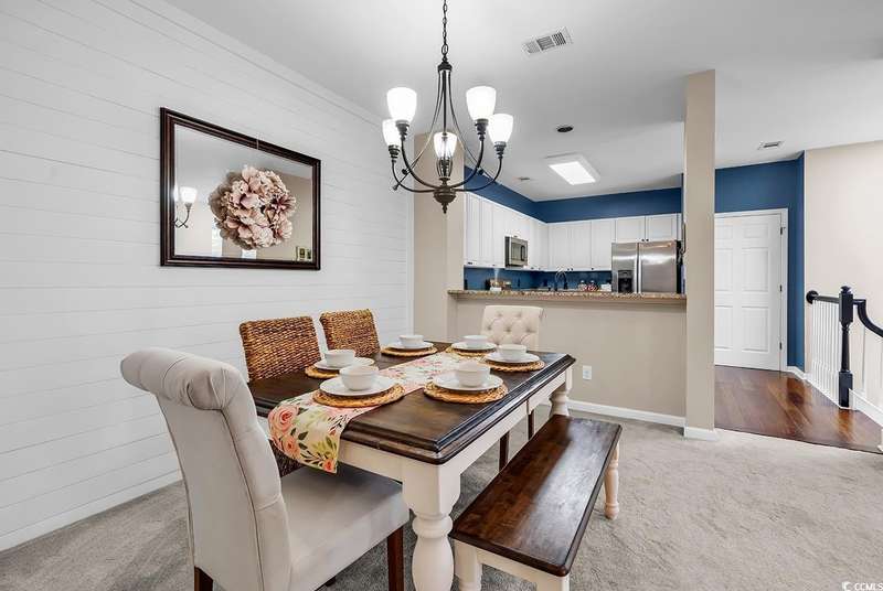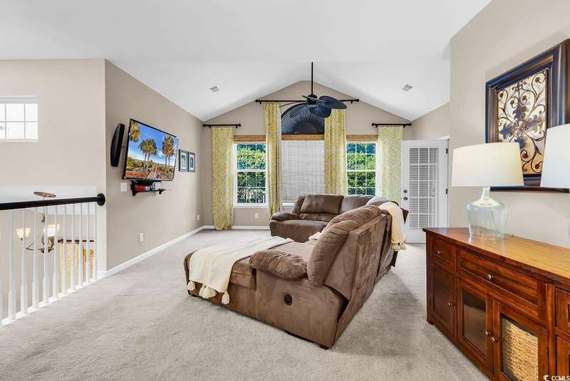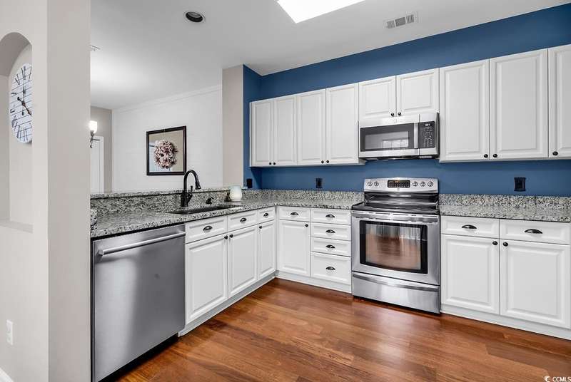This beautifully updated condo in the highly sought-after, gated Wachesaw Plantation East offers an exceptional opportunity to enjoy both comfort and tranquility in a prime location. As you step inside, you’ll be welcomed by a small foyer with additional closet space, followed by stairs leading to the spacious living area. Once you reach the top, you'll appreciate the open floor plan, where the kitchen flows seamlessly into the living and dining areas—creating a bright, inviting space perfect for both daily living and entertaining. The primary bedroom is a true retreat, complete with a large walk-in closet and an en-suite bathroom featuring a handicap-accessible shower for added convenience and comfort. From the living room, you can step into the serene Carolina Room—an ideal space to sip your morning coffee, relax, or simply enjoy the fresh air while taking in the peaceful surroundings. Outside, the common area behind the condo provides the perfect setting for unwinding. Whether you’re gathering around the fireplace, grilling up a meal, or watching golfers approach the 9th green of the Wachesaw East Golf Course, this space invites relaxation and enjoyment. Living in Wachesaw Plantation East means you’re part of a quiet, gated community offering walking and biking trails, tennis and pickleball courts, and a resort-style pool and fitness center. Plus, the location provides easy access to the beach, Murrells Inlet Marsh Walk, and all the dining, entertainment, and shopping the Grand Strand has to offer. Whether you’re seeking a full-time residence or a peaceful vacation retreat, this condo offers the ideal blend of comfort, convenience, and community.