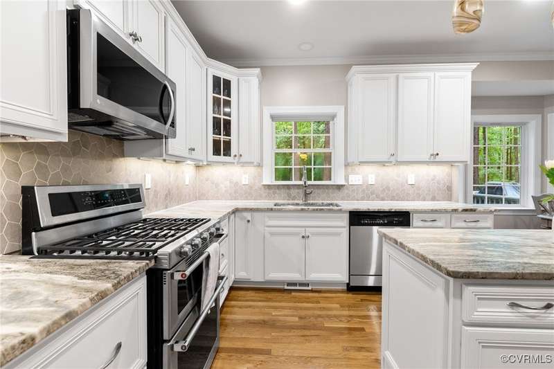Did you miss your opportunity for this gem? Buyer financing fell through. Nestled at the end of a quiet cul de sac, this striking colonial-style home offers the perfect blend of timeless charm & modern elegance. With a classic brick facade & transitional architectural details, the home boasts curb appeal & functionality. Step inside to find gleaming hardwood floors throughout the first & second levels, extending into all bedrooms, creating a cohesive & warm living environment. The main level is highlighted by a stunning kitchen (renovation 2023) showcasing white cabinetry, leathered granite countertops, a stylish ceramic tile backsplash, gas cooking & double ovens. The center island with built in beverage refrigerator is ideal for entertaining or casual living. The kitchen flows seamlessly into the family room where built in cabinets with open shelves flank a cozy fireplace, adding both character & storage. This open concept space is perfect for gatherings, blending comfort & functionality. Upstairs the primary suite serves as a luxurious retreat with its generous size and a beautifully updated en-suite bathroom. Thoughtfully redesigned, the bathroom features heated tile flooring, a 6' walk in shower with dual shower heads, a heated towel rack, framed mirrors and a pocket door for added privacy. A linen closet offers practical storage. Additional highlights include a 2nd floor laundry room and nice sized secondary bedrooms. The basement which is currently set up as a bedroom could serve as an additional family room space, recreation room, craft space or home school room, there is a full bath with a low curbwalk in shower in the basement. This home combines the traditional appeal of a colonial with sleek updated features and a premier location - ideal for today's lifestyle. This home is located in the vibrant community of The Highlands, enjoy the amenities with miles of walking or running trails, a 65 acre lake, pool complex, playground, 18 hole championship golf course, fitness center and The Reserve restaurant.