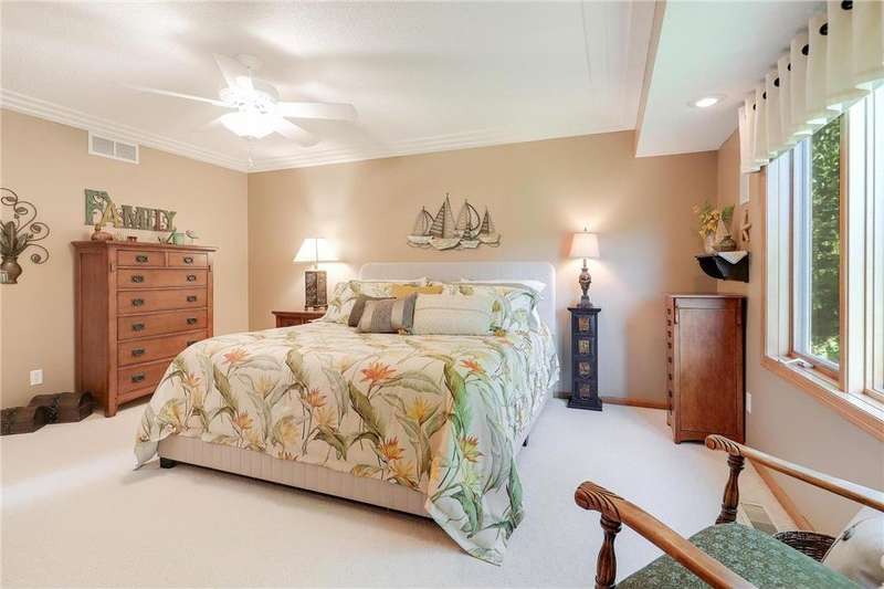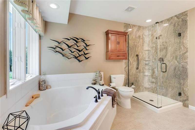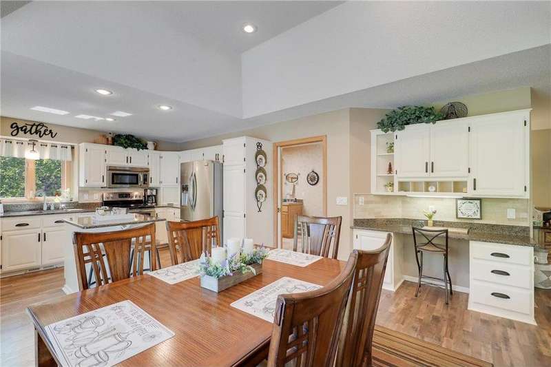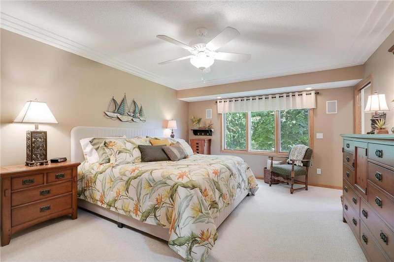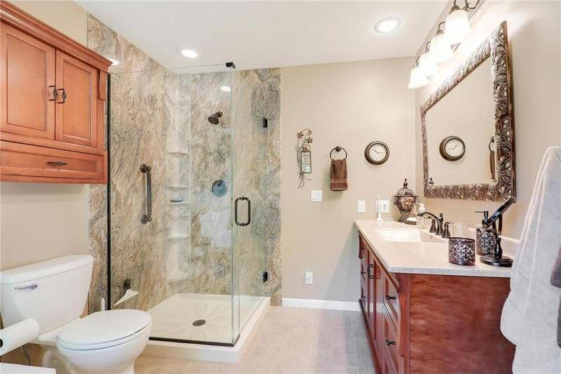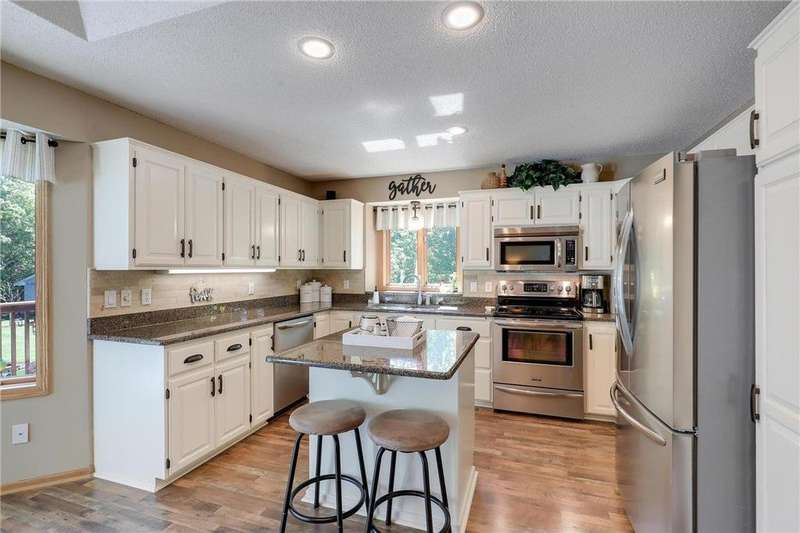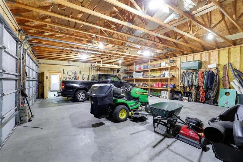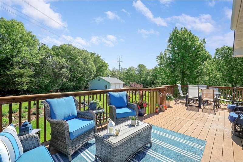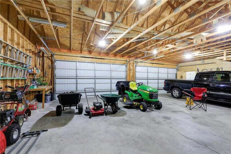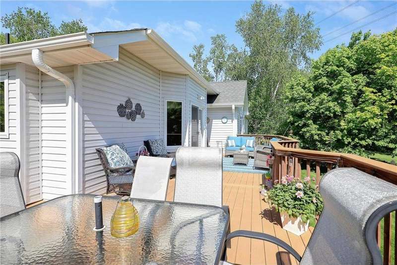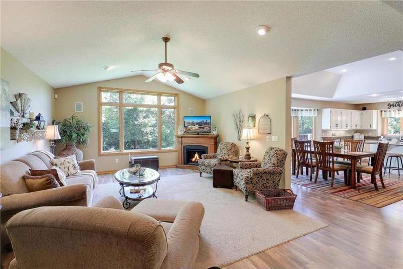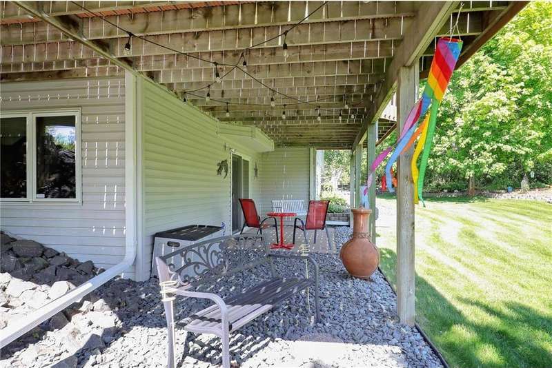 Immaculate and spacious 3+ bedroom, 3-bath walkout rambler nestled on 2.66 private acres surrounded by mature trees and beautifully landscaped grounds. If you're looking for garage space, this property delivers with an oversized 3-car attached garage and an incredible 6-car detached garage featuring a heated workshop. Step inside to a warm and inviting main level offering vaulted ceilings in the family room, a bayed and vaulted dining area, and an updated kitchen complete with stainless steel appliances, granite countertops, and a center island. The main floor also includes a large laundry/mudroom with built-in cabinetry, a generous primary suite with a walk-in closet, and an updated private bath featuring a jetted tub and separate shower. Enjoy the outdoors from the expansive wraparound deck with maintenance-free decking or relax on the covered patio. The finished walkout lower level features a spacious family/rec room with bar and gaming area, an office or additional bedroom, and an incredible spa room complete with sauna and hot tub. Additional highlights include newer mechanicals, a bright and open floor plan, in-ground sprinkler system, and meticulously maintained gardens. A truly must-see property!