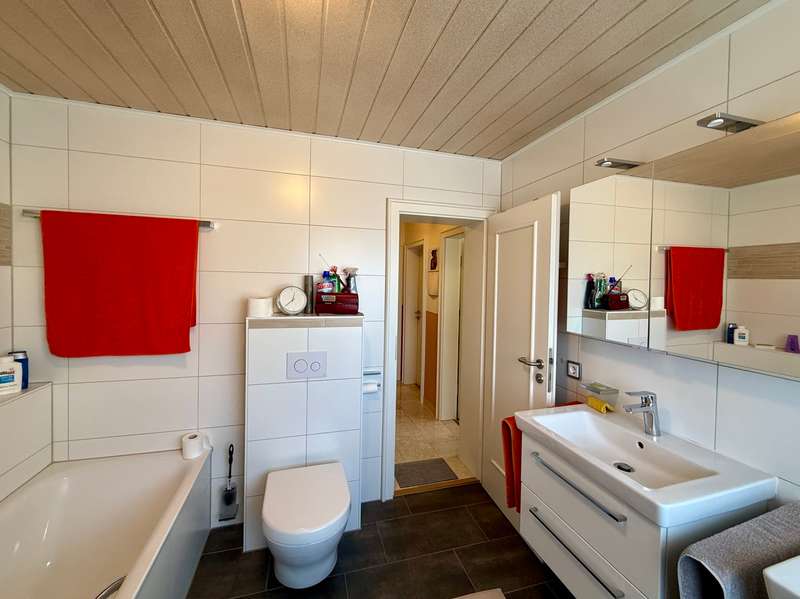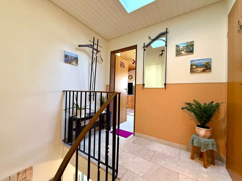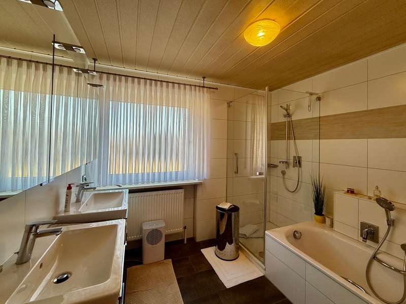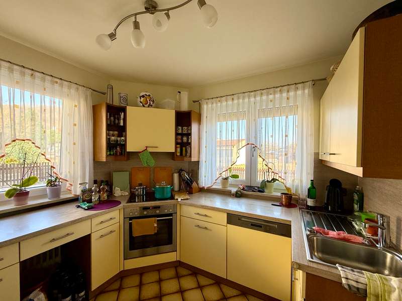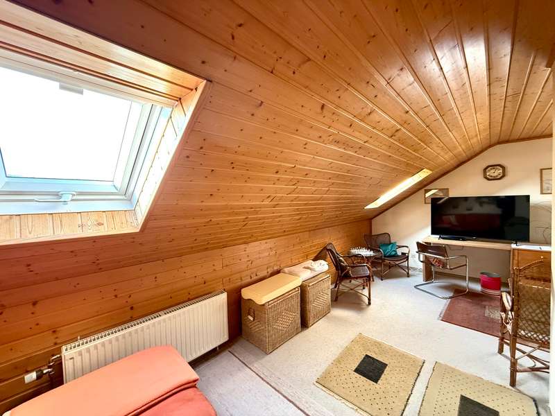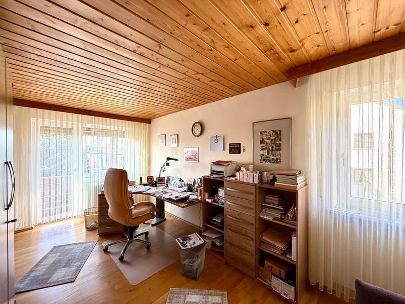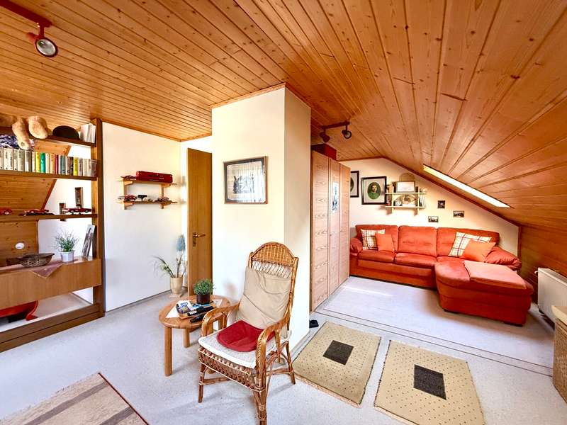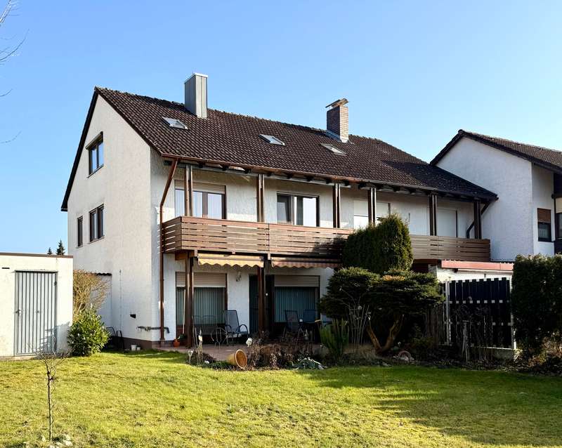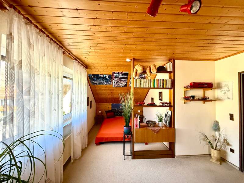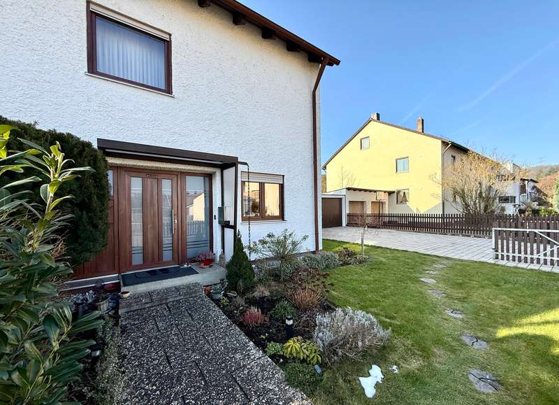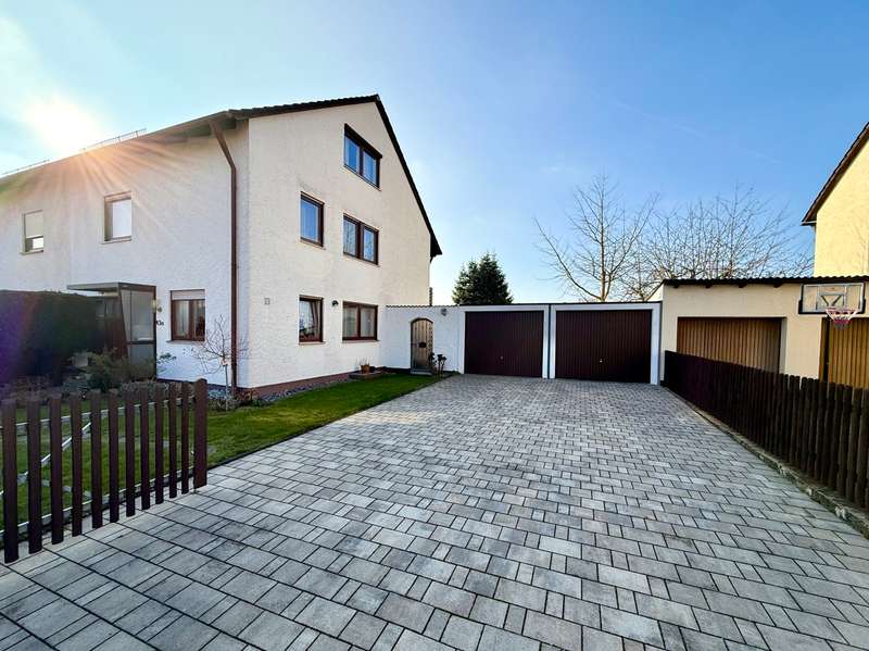 A perfect combination of comfort, style and functionality awaits you in this charming semi-detached house, nestled in an absolutely peaceful residential area that meets the highest standards. The property is located right next to the "Kreuther Forst" nature reserve, one of the most beautiful natural areas in the region, which is ideal for long walks, bike rides or simply relaxing. Here you can experience nature up close and leave everyday life behind you while enjoying the tranquillity and idyllic surroundings. The inviting atmosphere can be felt as soon as you enter the house: the entrance area features a practical checkroom that has been stylishly integrated into the room, as well as a modern guest WC with an elegant tiled design. The entire house impresses with elegant, white real wood style doors, which create a harmonious and elegant ambience in every room. These high-quality doors underline the stylish character of the property and combine classic elements with modern living quality. The heart of the house is the spacious living room, which exudes a special charm with its elegant parquet flooring. Here you will find enough space for a living area or a large, cozy couch area that invites you to relax and linger. The cozy wood-burning stove provides cosy warmth in the cold season and creates a comfortable atmosphere, while the large window fronts let in plenty of natural light and open up a view of the lovingly landscaped garden. The garden itself is a true paradise for nature lovers and families. With its spacious lawn and well-tended beds, it offers plenty of space to live out your green thumb or simply enjoy the tranquillity of nature. There is plenty of space for children to play - be it on a trampoline, a swing or exciting adventures. The covered terrace extends the living space outside and is the ideal place for summer barbecues or a relaxed breakfast al fresco. Here you can enjoy the pleasures of your own garden to the full. The kitchen, which is directly adjacent to the dining area, is another highlight of this home. It is equipped with a timeless fitted kitchen that includes all modern technical appliances and will delight amateur chefs. The generous work surface and practical layout make cooking here a real pleasure. The open dining area, which is directly adjacent to the kitchen, offers space for the whole family and becomes the communicative center of the house thanks to its connection to the living room. Here you can cook, eat and spend sociable evenings together. On the upper floor you will find two bright and friendly children's rooms, which offer plenty of space for playing and learning thanks to their generous layout. The master bedroom is a quiet retreat with direct access to the sunny balcony. From here, you can enjoy a fantastic west-facing view of the Keilberg and the adjacent nature reserve. This view invites you to spend relaxing moments, whether over a coffee in the evening or simply enjoying the tranquillity of the surroundings. The spacious bathroom on this floor is a real highlight and offers luxurious comfort with a double washbasin, floor-level shower and separate bathtub. The as-new, large-format tiles in neutral tones create an elegant and timeless atmosphere that perfectly combines functionality and design. The attic impresses with its cozy charm and offers additional space that is ideal for use as a teenager's room or studio. Particularly noteworthy is the conversion potential for an additional bathroom with WC, which could be used to create a separate living unit for a growing child or as a guest area. This flexibility makes the top floor a valuable additional room that can be adapted to your individual needs. There is a very large hobby room in the basement, which offers a wide range of possible uses. Whether as a guest area, home office or playroom - this room adapts to your individual requirements. The basement is complemented by a large storage room and a practical laundry room with sufficient space for a washing machine and dryer. The outdoor area of this property is also impressive across the board. An extremely well-kept front garden awaits you in front of the house, which not only gives a friendly first impression, but also invites you to garden or simply linger. The large, paved driveway offers ample parking space and leads directly to the two garages. There is space here not only for your vehicles, but also for bicycles, tools or garden equipment. The spacious driveway is also perfect for providing sufficient parking space for visitors. The property also boasts modern technical equipment that ensures both comfort and energy efficiency. As-new plastic windows with double glazing have been installed, which not only ensure a pleasant room atmosphere, but also minimize heat loss. The modern gas condensing boiler heating system ensures outstanding energy efficiency and guarantees a reliable heat supply at any time of year. This sophisticated equipment saves energy costs and at the same time meets the requirements of a sustainable living concept. The staircase, which is fitted with high-quality marble stone tiles, enhances the entrance area and the floorboards of the individual floors and rounds off the exclusive overall appearance of this property. This semi-detached house is the ideal home for families and couples who value living quality, style and generous space. Sale against bid in a bidding process - minimum offer 385,000 euros. Viewing possible on Sunday, 09.02.25 from 10.00 am to 12.00 pm. Please register in advance for the viewing
