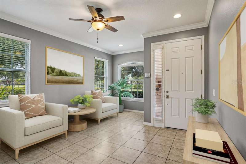 One or more photo(s) has been virtually staged. This property QUALIFIES FOR A CREDIT UP TO $5850 through the seller's preferred lender / Has an FHA Appraisal for $382k done September 2025** Seller may consider buyer concessions if made in an offer ****Luxury upgrades perfectly wrapped in a bow of low maintenance townhome living! Welcome to the Villas at Cypress Springs, where this beautiful END-UNIT townhome combines a spacious floor plan with ease of living and tranquil POND VIEWS. With key updates already done – a NEW ROOF (2023), A/C (2021), and plush new carpeting (2023) in the bedrooms – you can move right in and enjoy. A bright, open layout awaits you inside anchored by a dramatic TWO-STORY LIVING ROOM filled with NATURAL LIGHT thanks to the extra windows only an en-unit can offer. 10’ ceilings on the main floor add a sense of volume, while crown molding, designer paint and upgraded finishes throughout give a polished, timeless feel. The thoughtfully designed floor plan offers two separate living spaces, a dining room off the kitchen, and a SCREENED LANAI accessed through French doors that overlooks the pond – a private space to relax and unwind! Perfectly situated in the heart of the home, the kitchen delivers in both form and function. Featuring GRANITE COUNTERTOPS, a SUBWAY TILE BACKSPLASH, desirable STAINLESS STEEL APPLIANCES (the fridge and stove NEW IN 2024), and a 42” mahogany cabinet package topped with crown molding, it is built to impress! The large island with breakfast bar is a rare bonus in this community, providing extra seating, prep space, and connectivity to the adjacent living area. You will find all of the bedrooms upstairs, including a generous PRIMARY SUITE that becomes a true retreat with DUAL CLOSETS and a well appointed en-suite bath boasting DUAL/SPLIT VANITIES, a large SOAKING TUB, and walk-in tiled shower – classic Toll Brothers luxury! The private enclosed loft flexes easily as a fourth bedroom, home office, play space or even a spacious dressing area with storage already in place. Bedrooms two and three are on the opposite side of the home and all three rooms share a second full bath. The laundry room is also conveniently located on the second floor. Additional highlights include a 1-car garage with a 2-car driveway, easy care CERAMIC TILE FLOORS in all main living areas, multiple STORAGE OPTIONS (pantry, under-stair closet, two linen closets), and decorator touches throughout. The villas community gives residents of the small enclave their own pool tucked away at the end of the cul-de-sac; plus access to a second pool, tennis courts, pavilion, and playground as part of the larger Cypress Springs neighborhood. Bonus – “A” rated Cypress Springs Elementary is just around the corner, ideal for convenience and peace of mind. Located in sought after East Orlando, you are just minutes from SR 417, 407, Lake Underhill and Curry Ford Rd, with easy access to Downtown Orlando, Waterford Lakes, Lake Nona, and the Orlando International Airport. Shopping, dining, trails, and parks are all nearby, and area beaches and theme parks are within easy reach. This is more than a townhome – it is a lifestyle upgrade with space, style and unbeatable surroundings!