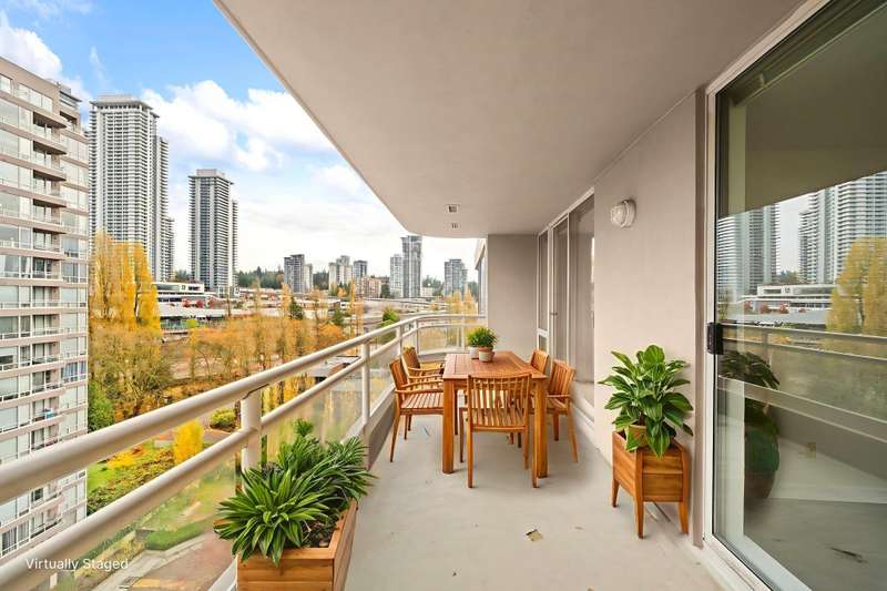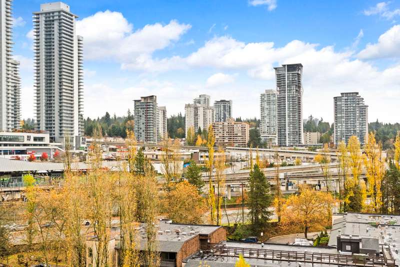 Welcome to Strathmore Towers — an ideal opportunity for first-time buyers and savvy investors! This well-designed 670 sq ft one-bedroom home offers a highly functional layout with generous living space and a large 130 sq ft balcony to enjoy open city views. The unit includes one secured underground parking stall and a dedicated storage locker for added convenience. Perfectly located just steps from Lougheed Town Centre, SkyTrain, shops, and restaurants, this home puts everyday essentials right at your doorstep. A fantastic combination of comfort, location, and value.