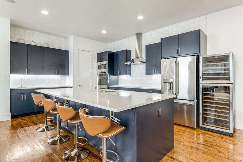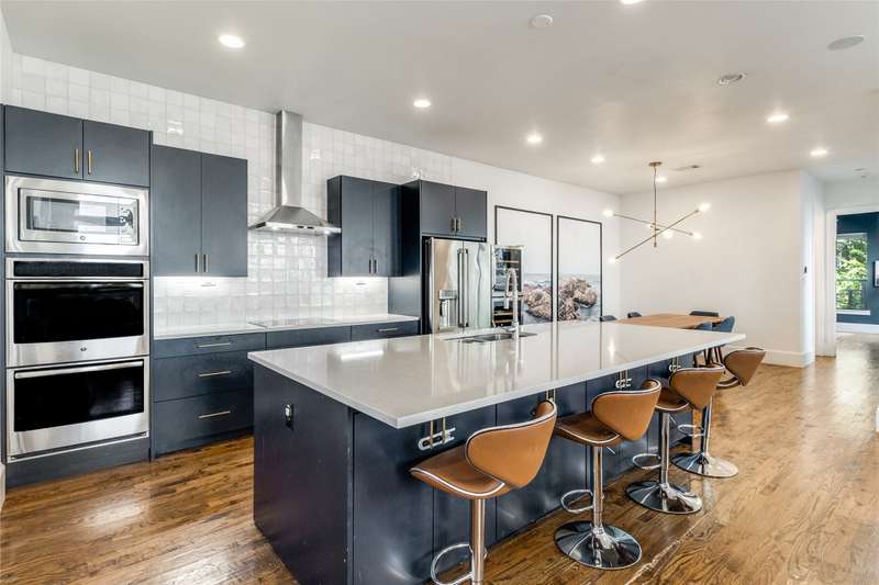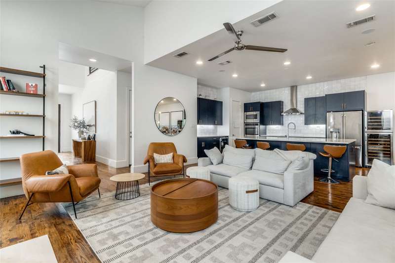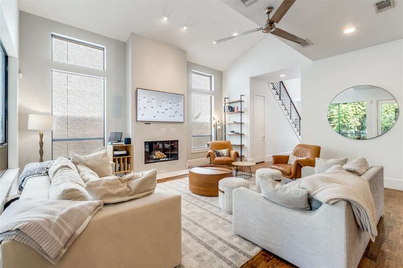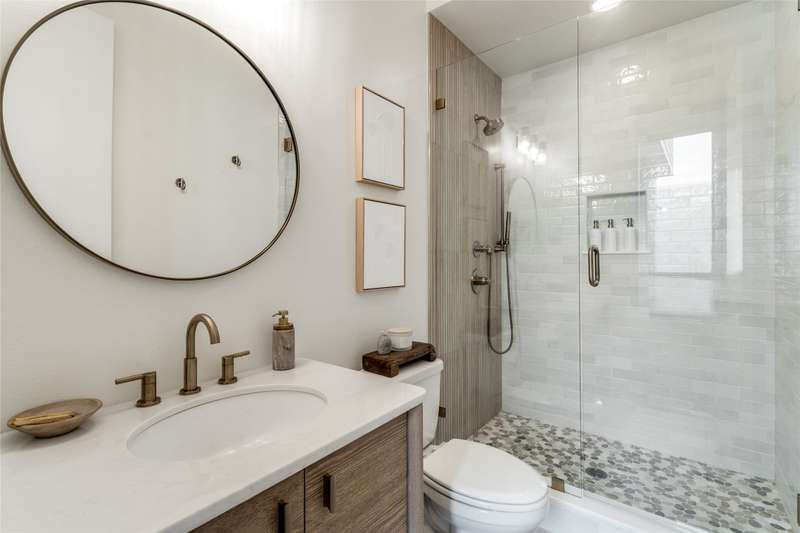 Modern living meets Lakewood charm in this 4-bedroom, 3-bath home on a serene creek lot in Lakewood Elementary. Filled with natural light, the open layout features hardwood floors, soaring ceilings, and a chefs kitchen with induction cooktop. A flexible downstairs bedroom doubles as an office, while the spacious primary suite upstairs offers a treehouse-like setting and generous walk-in closets. Two additional bedrooms and abundant storage complete the second level. Enjoy outdoor living with Texas native landscaping and a heated cowboy pool overlooking the creek. The oversized garage with tall ceilings provides space for vehicles, storage, or a workshop. Just minutes from White Rock Lake, Lakewood shops, and dining, this home perfectly balances modern design with everyday functionality.
