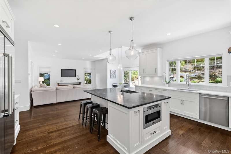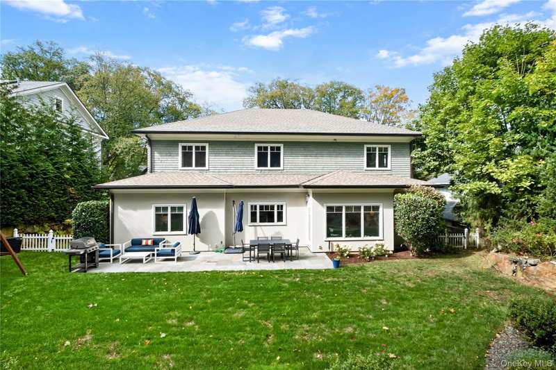 Move right into this better-than-new modern colonial located in the highly sought-after Greenacres section of Scarsdale. Built in 2017 by a renowned local, award-winning developer, this exceptional residence seamlessly blends timeless elegance with contemporary design. The grand two-story foyer makes a stunning first impression and sets the tone for the gracious interior beyond. To the left is a formal living room with an elegant wood-burning fireplace; to the right, a spacious formal dining room with a walnut butler's pantry, perfect for entertaining loved ones and friends. The wide center hall, unobstructed by the staircase, enhances the homes open flow, leading to the spectacular chefs kitchen and family room at the rear. Designed for both beauty and function, the kitchen showcases an expansive center island with striking black marble countertops, custom cabinetry, and premium Viking stainless steel appliances, including a 6-burner stovetop and double wall ovens, side by side refrigerator & freezer, built-in microwave drawer and a dishwasher. A sunlit breakfast nook opens to an oversized patio overlooking the private, level backyardperfect for indoor-outdoor living. The adjoining family room offers an inviting space for relaxation and entertaining. A first-floor guest suite with an ensuite bath, a mudroom, and an attached two-car garage completes this level. Upstairs, the primary suite serves as a serene retreat, featuring a tray ceiling, two walk-in closets, and a spa-like bath with soaking tub, separate glass-enclosed shower, and radiant heated floors. A bedroom currently used as an office includes its own ensuite bath, while two additional bedrooms share a stylish hall bath. A bonus bedroom, presently a home gym, and a conveniently located laundry room complete the second floor. The expansive lower level is an entertainers dream, offering an enormous finished space with two playroomsideal for a media room, gym, or recreation areaplus abundant storage and a legal bedroom with full bath.