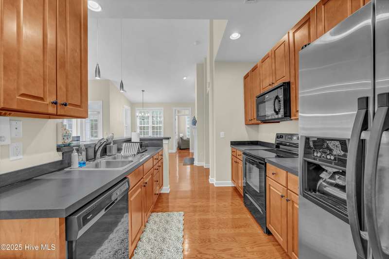Located in the sought-after Magnolia Greens community in Leland, this end-unit townhome offers a blend of convenience and style. With 3 bedrooms and 2 full baths, approximately 1,785 sq ft of living space, it features a bright open layout with hardwood floors in the main areas, ceramic tile in baths and newly carpeted bedrooms. The modern kitchen includes a breakfast bar for casual dining, while the primary suite boasts dual sinks, a large soaking tub, walk-in shower and private water closet. Outside, enjoy the covered front porch, screened-in back porch and a separate patio for outdoor relaxation. A two-car attached garage adds ease of access. Residents benefit from wonderful amenities including indoor and outdoor pools, clubhouse, tennis, fitness center and a 27-hole golf courseall just minutes from shopping, dining and historic downtown Wilmington.