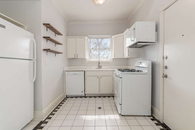 Really cute upper one bedroom with hardwoods, lots of windows, off street parking, tall ceilings updated kitchen and bath. Front and back porch exterior areas. Really clean and limited access door.
