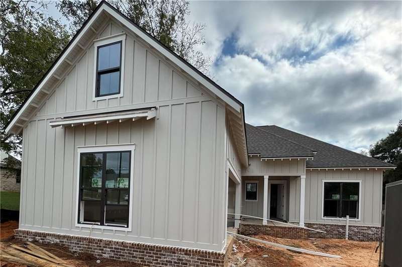 Custom home beautifully built by Tower Homes, where timeless design meets modern comfort in the heart of Fairhope, Alabama. This beautifully designed two-story home blends Southern charm with functional living spaces just minutes from Downtown Fairhope and the bayfront. Step through the covered front porch into a bright foyer flanked by a formal dining room with upscale trim work and an adjoining butler's pantry with a whole bar area, including a sink and cabinetry. The open-concept living area features custom cabinetry and open wood shelving built into the space around a cozy gas fireplace, creating a warm focal point for gatherings. The gourmet kitchen features Calacutta Gold countertops, stainless steel appliances including a gas cooktop, wall oven, and built-in microwave, custom cabinetry, an oversized island, and a walk-in pantry. The adjoining breakfast nook opens to the large, covered back porch, including a half-screened area, perfect for morning coffee or relaxing evenings outdoors. The main-level primary suite includes a walk-in closet and a spa-like bath with a statement soaking tub, a tiled shower with a rain shower head and corner bench, and double vanities. A second bedroom with a full en-suite bath on the main level offers flexibility for guests. Need a dedicated office space? This is the home with a dedicated office space tucked away that could be used as a 5th bedroom. Upstairs, two additional bedrooms share a full bath and a spacious bonus area ideal for a media or game area. Located on lot 6 in The Meadows at Point Clear, where you will enjoy the common areas, water features, and views. Gold Fortified, the home includes a 1-yr builder warranty, 10-yr PWSC structural warranty, and a 1-yr. termite bond with Formosan coverage. Est. Completion: Feb/Mar 2026. One or more principals of the selling entity are licensed real estate agents/Brokers in AL. Floor plans are for example only. Buyer to verify all information during due diligence.