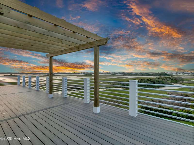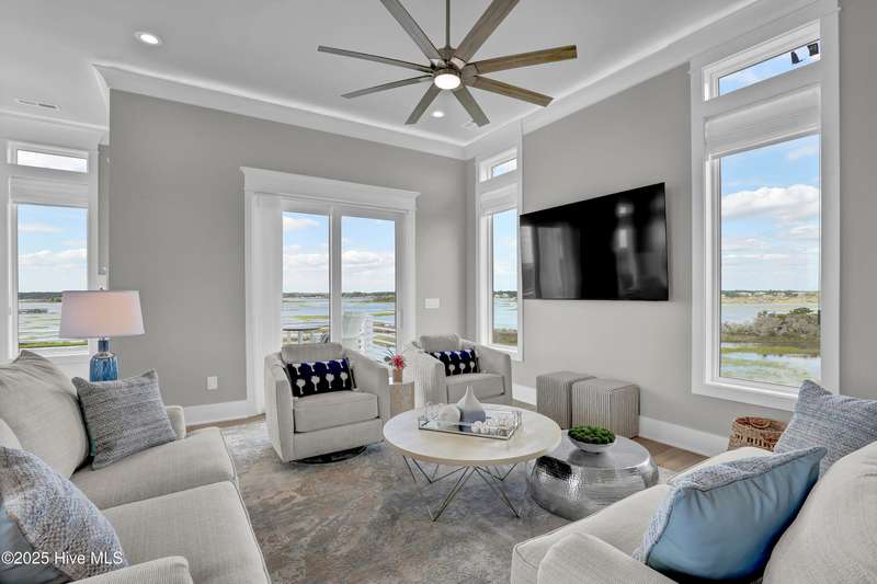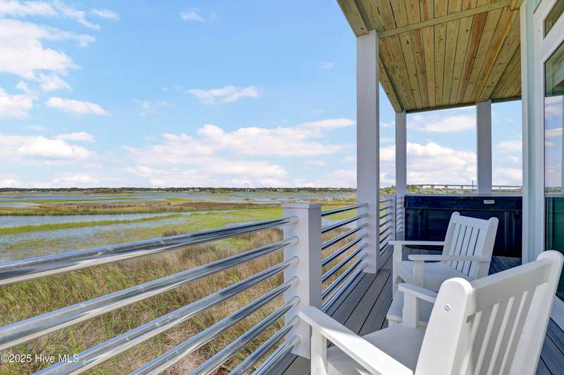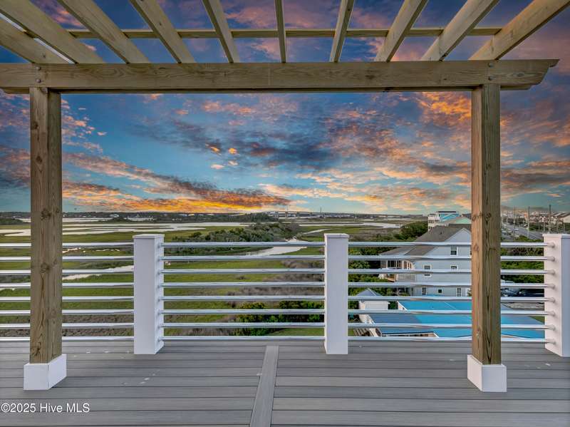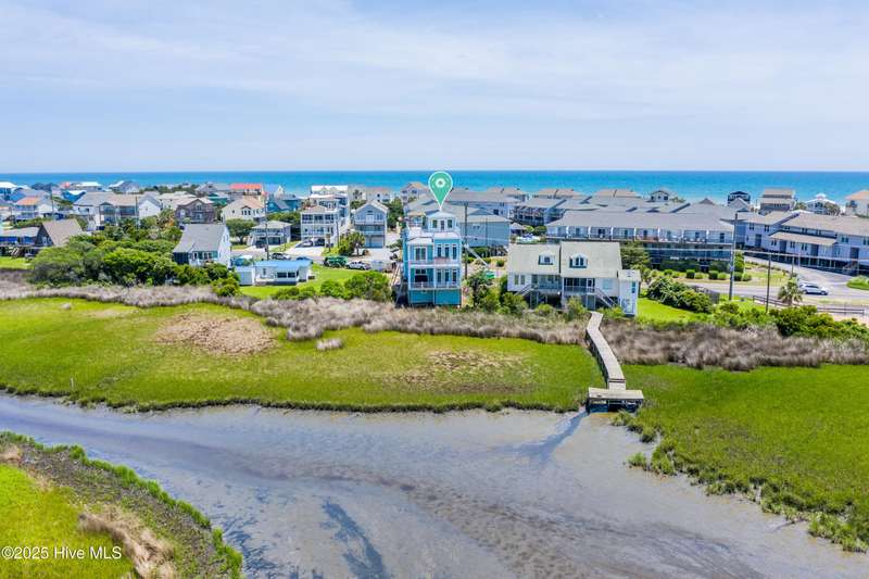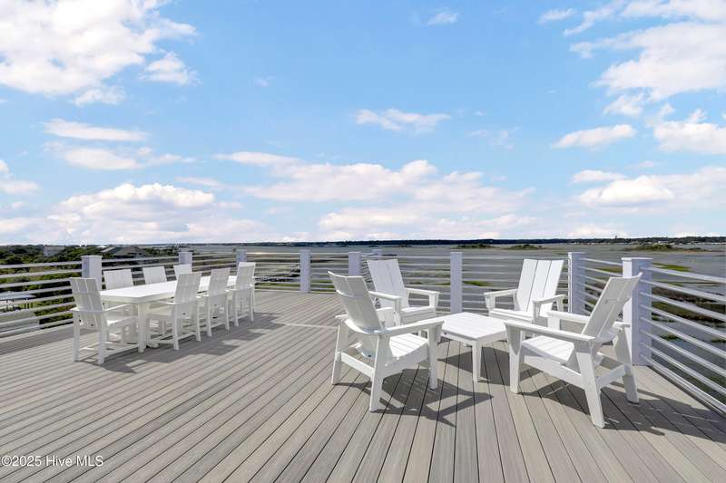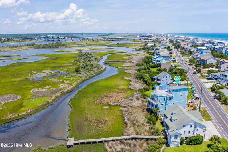 Welcome to your dream coastal retreat in the heart of Surf City! Built by the premier luxury developer in the area, this stunning 3,959 square foot residence offers stylish and eloquent living with breathtaking panoramic views of the Intracoastal Waterway, the iconic high-rise bridge, and the Atlantic Ocean. With 6 spacious bedrooms, 5 full bathrooms, and 2 half-bathrooms, there is room for everyone to relax in style and comfort. No detail has been overlooked in this custom-built home, which boasts top of the line finishes including quartz counters, Cali Luxury Vinlyl flooring, and tiled backsplashes in the kitchn and bar areas. In addition, the home features large oversized windows, wainscoting and upgraded tray ceiling and toe kick lighting in the main living spaces. Take in the sunsets relaxing in the jacuzzi tub located the first floor sound facing deck or relax on the rooftop deck featuring panoramic sunset and sounds views. Take advantage of the large rec room featuring wet bar with flip up window, perfect for entertainment.In addition to its stunning design and unbeatable views, this home offers exceptional investment potential. Located in the middle of town, shops, restaurants and the beach access are a short walk, bike ride or golf cart ride away. The spacious garage could potentially fit 4+ cars plus a golf cart, With additional parking in the driveway, it easily accommodates large families or groups, perfect for short term rentals. The properties size, layout, and premium finishes and entertainment spaces make this a premier destination for renters seeking a high end beach experience. Whether you are looking for a primary residence, a second home or rental investment, this property has it all. For boaters out there, dry slips can be purchased at the Topsail Island Yacht Club just a short bike or golf cart ride away.