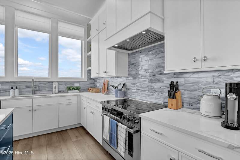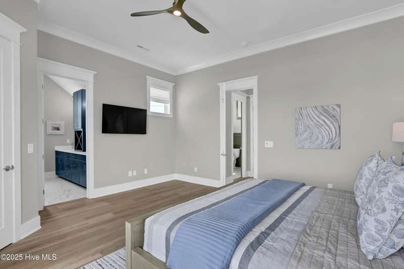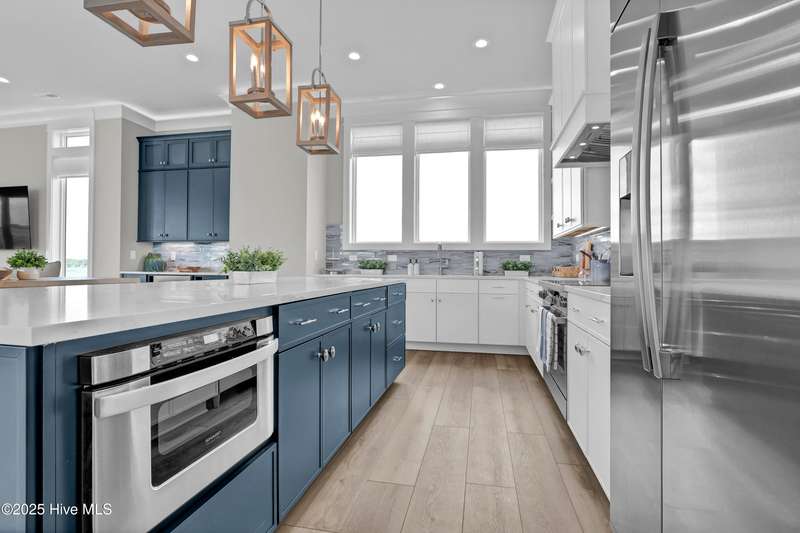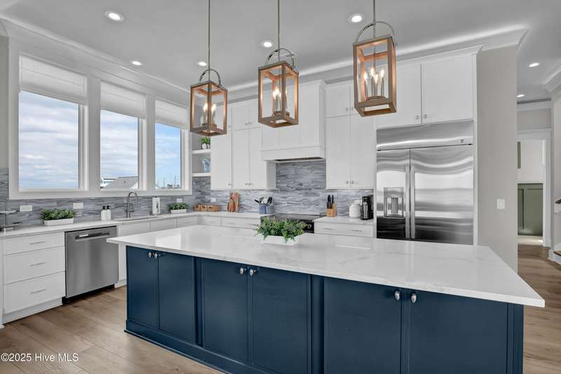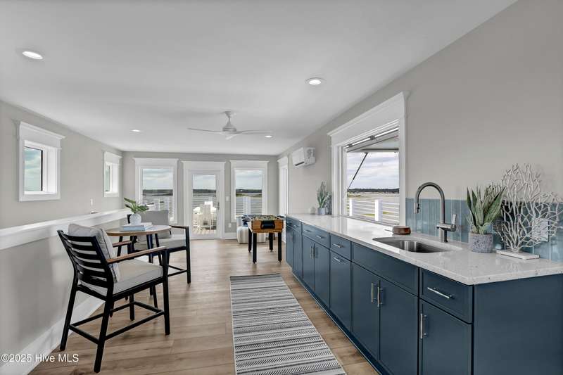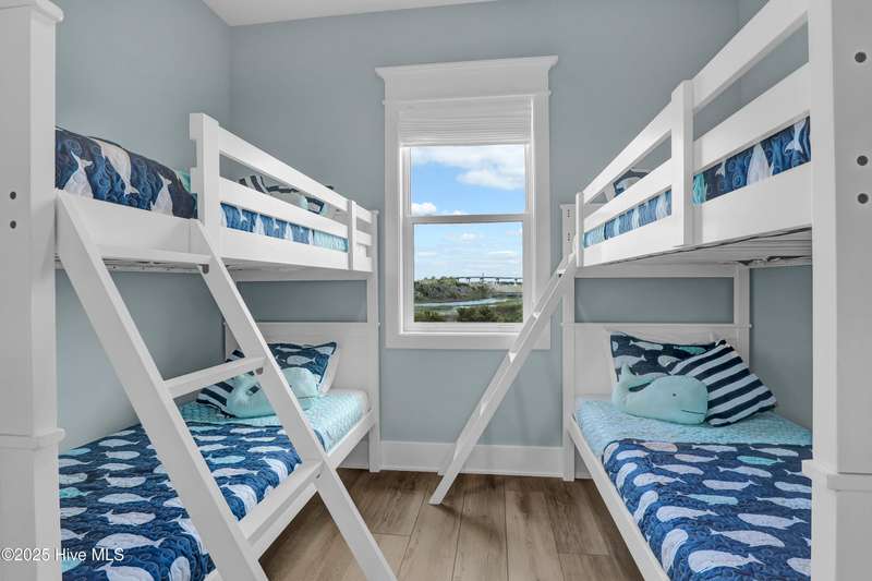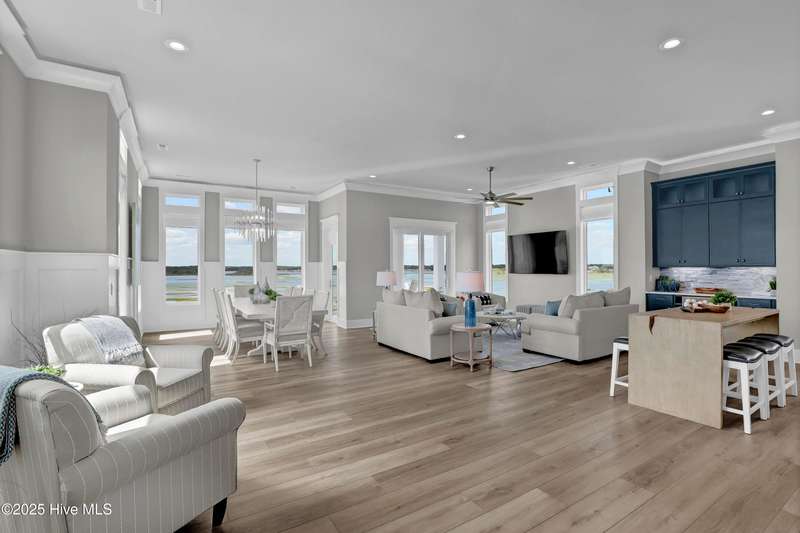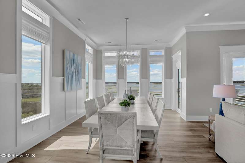 Welcome to your dream coastal retreat in the heart of Surf City! Built by the premier luxury developer in the area, this stunning 3,959 square foot residence offers stylish and eloquent living with breathtaking panoramic views of the Intracoastal Waterway, the iconic high-rise bridge, and the Atlantic Ocean. With 6 spacious bedrooms, 5 full bathrooms, and 2 half-bathrooms, there is room for everyone to relax in style and comfort. No detail has been overlooked in this custom-built home, which boasts top of the line finishes including quartz counters, Cali Luxury Vinlyl flooring, and tiled backsplashes in the kitchn and bar areas. In addition, the home features large oversized windows, wainscoting and upgraded tray ceiling and toe kick lighting in the main living spaces. Take in the sunsets relaxing in the jacuzzi tub located the first floor sound facing deck or relax on the rooftop deck featuring panoramic sunset and sounds views. Take advantage of the large rec room featuring wet bar with flip up window, perfect for entertainment.In addition to its stunning design and unbeatable views, this home offers exceptional investment potential. Located in the middle of town, shops, restaurants and the beach access are a short walk, bike ride or golf cart ride away. The spacious garage could potentially fit 4+ cars plus a golf cart, With additional parking in the driveway, it easily accommodates large families or groups, perfect for short term rentals. The properties size, layout, and premium finishes and entertainment spaces make this a premier destination for renters seeking a high end beach experience. Whether you are looking for a primary residence, a second home or rental investment, this property has it all. For boaters out there, dry slips can be purchased at the Topsail Island Yacht Club just a short bike or golf cart ride away.