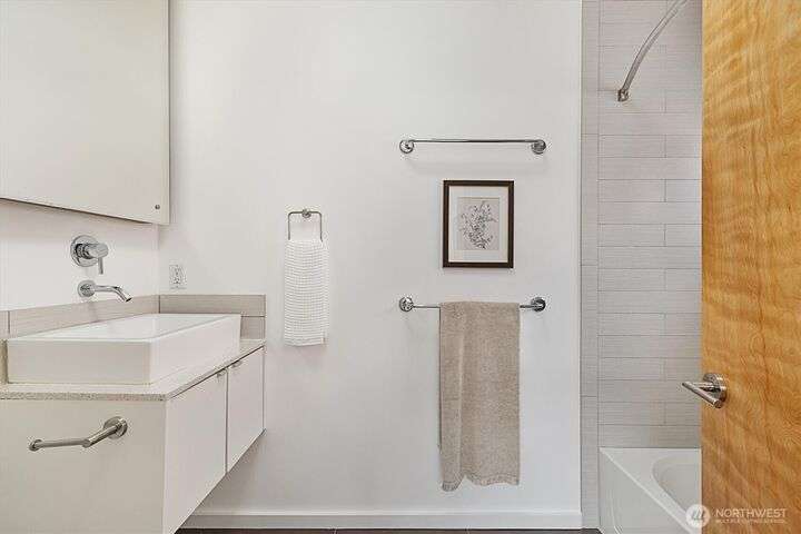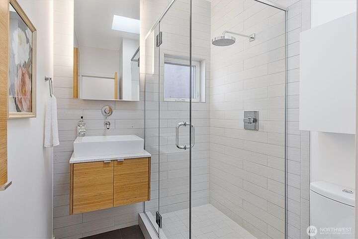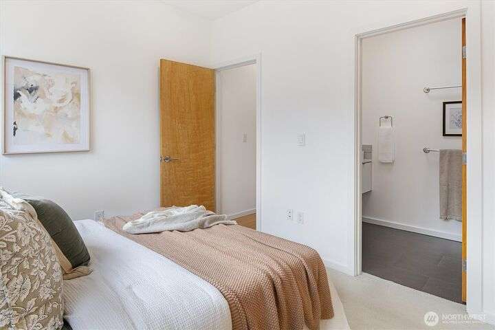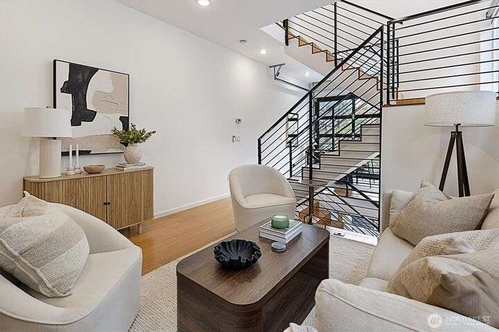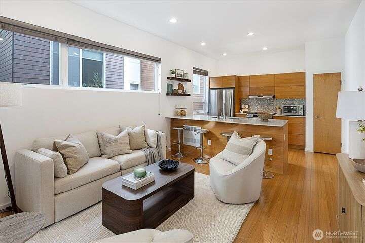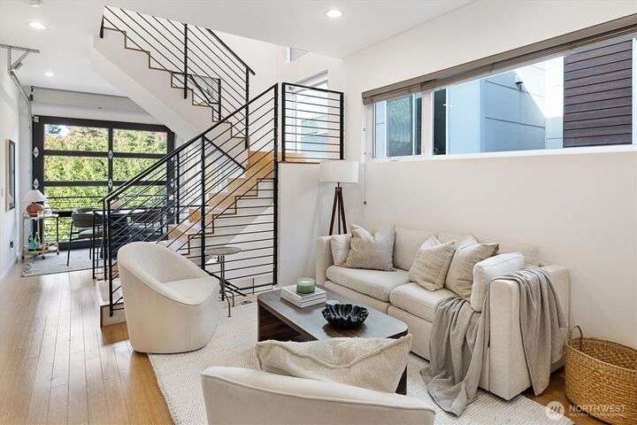 Discover modern living in this 2 bedroom + office nook, 2.25 bath townhome in Cap Hill, where style meets comfort in a vibrant setting. Open floor plan connects living & dining spaces, highlighted by a dramatic roll-up wall that welcomes the outdoors in. Modern kitchen features quartz counters, SS appliances, and generous island with breakfast bar. Expansive windows fill the interiors with natural light. Modern, chic architectural details throughout. Primary suite offers a cozy retreat with en-suite bath and generous closets. Second bedroom and bathroom, and laundry all on the same floor. Versatile lower-level flex space adapts to your lifestyle, while attached garage adds convenience. Easy access to DT Seattle, shops, dining, and freeways.