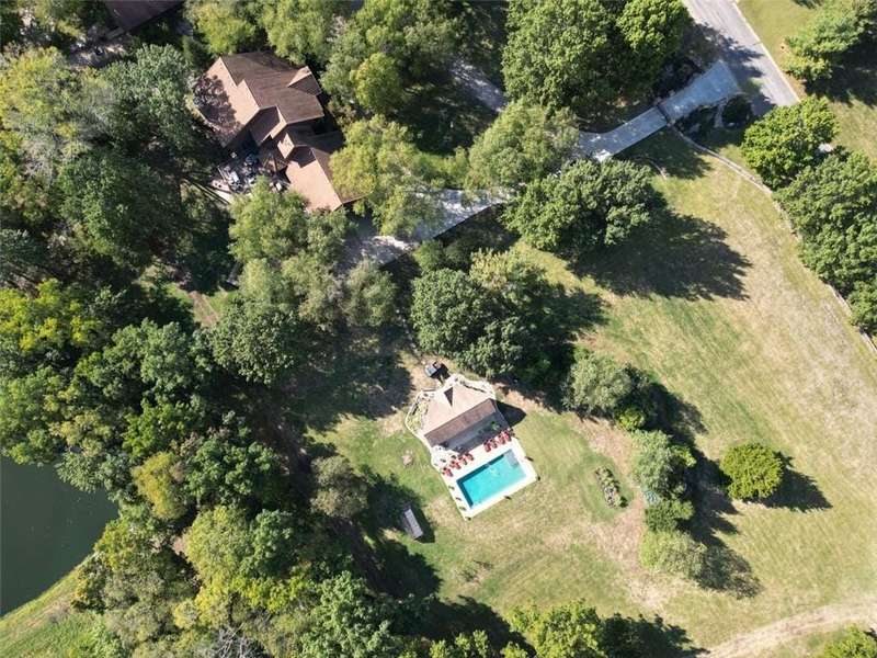 One-of-a-kind gated estate on 21 dreamy acres (4 parcels)! No HOA, tucked into a quiet neighborhood of mature trees and estate lots. This property is packed with luxurious amenities: heated saltwater outdoor pool (deep enough to dive), pool house cabana with WiFi, 117-yard golf hole, trails, volleyball, basketball, firepits and a 2+ acre stocked pond! The main home offers approx. 7,000 sq ft with 2 true primary suites upstairs, a 3rd bedroom in the finished lower level, and a 4th bedroom overlooking the flex room, and attached HVAC temperature controlled 6-car tandem garage with epoxy floors. Even more space is found in the charming two-bedroom carriage/guest house accessory the driveway with a 2 car garage. The Kitchen has brand new, high-end appliances, walk-in pantry with custom pull out storage, kitchen water filtration, two additional dishwasher drawers, and walks out to an oversized composite deck. The lower level has a bar for entertaining, fantastic theater room, a flex room with the indoor exercise pool that walks out to a covered porch. The home overflows with upgrades such as wide plank real wood floors with flush mount vents, whole house water softener, luxury trim work, Hunter Douglas blinds, steam showers, two laundry rooms, sliding screens at multiple screen doors, new exterior paint 2024, and more! This is more than a home -- it's a property designed for entertaining, relaxing, and enjoying the great outdoors! Enjoy a lifestyle and privacy views that can't be duplicated, all in a lovely neighborhood! There was once an additional bedroom in the main home that can be converted back for a 5th bedroom.