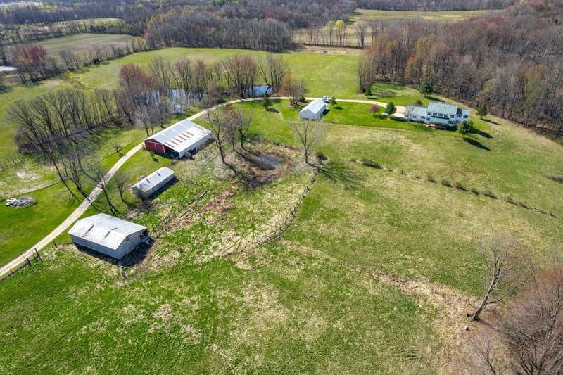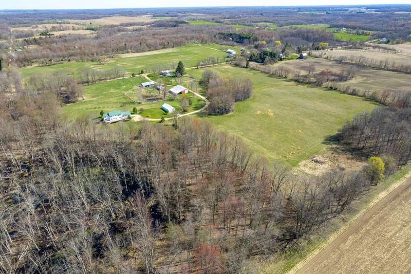 Placed perfectly atop rolling hills, surrounded by nature, woodlands and a pond singing with frogs, you'll find this one of a kind 39 acre homestead. The home was built in 1998 and has a total of 7 possible bedrooms and 4.5 baths, making it a great opportunity for multiple generational living. The walkout lower level has been used as a separate apartment in the past. The main level has 2 bedrooms, one with an ensuite, that could also be used as one very large suite. Upstairs you'll find another 3 bedrooms, full bath and a massive primary suite with its own full bath. This home has custom wood floors and trim through much of it and new carpet in the upper bedrooms. There are multiple large barns including a heated shop, horse, hay and milking barns. Call the listing agents today!