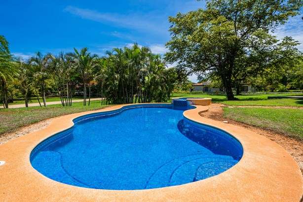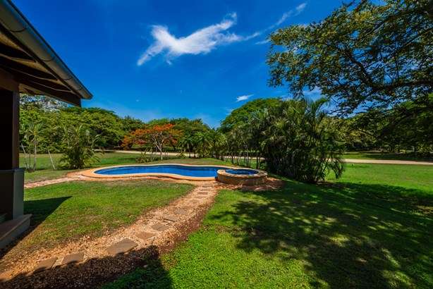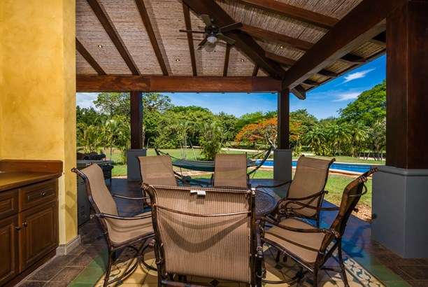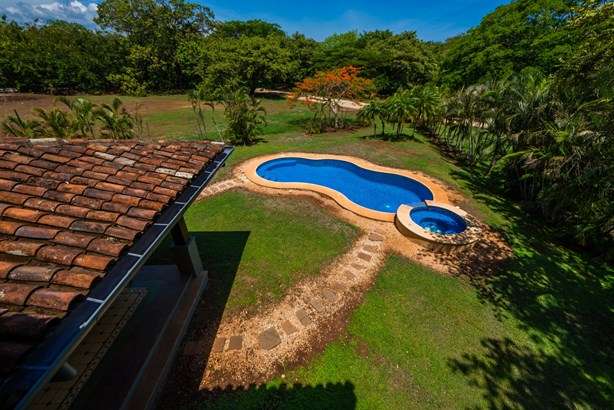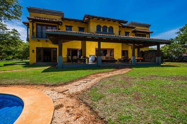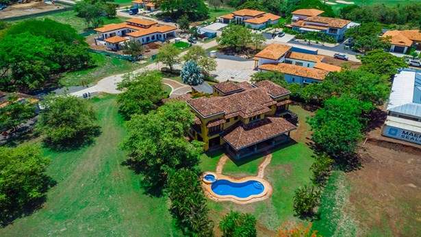 Welcome to Casa Miraflores, an exquisite colonial-style estate home located in the prestigious Reserva de Golf Community within Hacienda Pinilla. This luxurious property offers a captivating blend of elegance and comfort, with four bedrooms, five and half bathrooms, a maids quarter, and an impressive total area of 6,500 square feet. Situated on a sprawling lot spanning 2,458.86m2, Casa Miraflores presents a truly remarkable living experience.As you approach the residence, you are greeted by a grand entrance adorned with colossal columns, creating a covered space that invites you into the house. The front of the property features a roundabout surrounded by mature landscaping, with a majestic silver Bismarck palm tree at its center, adding a touch of natural beauty.Upon entering the home, you will discover a two-story layout designed to provide ample space and comfort. The upper floor boasts two oversized master suites, each equipped with a king-sized bed, jacuzzi tub, walk-in closet, and a private balcony. These master suites offer a serene retreat, allowing you to unwind and enjoy the picturesque views.The main floor of Casa Miraflores features stone floors adorned with unique spanish tile accents, adding a touch of charm to the living space. Designed with entertaining in mind, the home offers a main floor living room, an upstairs living room, and an outdoor living room, all capable of accommodating large groups comfortably. The main living room boasts two-story-high ceilings, creating an atmosphere of grandeur. For more intimate gatherings, curved wooden sliding doors can be closed, separating the kitchen from the living room and dining room. The main floor also has 2 large bedrooms with ensuite bathrooms. One has a jacuzzi and the other has an outdoor shower with a volcanic rock wall.The residence offers four distinct dining areas, catering to different occasions. A private dining room showcases a striking brick feature wall and elegant teak floors, complemented by teak beams on the ceiling. Additionally, there are dining tables in the open living room, in the kitchen, and in the covered outdoor terrace. Throughout the home, you will find solid wood cabinetry, adding a touch of warmth and sophistication to both the kitchen and bathrooms.The kitchen itself is a chef's delight, boasting unique green-colored granite countertops and stainless steel Viking appliances including a six-burner gas stove. With its spacious layout and modern amenities, this culinary haven offers a delightful experience for cooking enthusiasts. Adjacent to the kitchen is a massive covered terrace, perfect for al fresco dining and relaxation. Featuring caña brava ceilings, this outdoor space creates a seamless connection between indoor and outdoor living. Out here you will find a billiards table, an outdoor living room and dining section.A standout feature of Casa Miraflores is its stunning curved teak wood staircase, enhanced by a wrought iron railing and an impressive wrought iron chandelier. Ascending to the second floor, you will find teak floors throughout and spanish tile floors in the bathrooms. The bathrooms themselves are adorned with elegant marble countertops and two-person jacuzzi tubs, providing a luxurious bathing experience.The second floor also features an open living room with two leather couches, a balcony overlooking the outdoors, and a connection to the living room below. Perfect for relaxation and entertainment, this space includes a television for your viewing pleasure. To ensure comfort throughout the year, the home is equipped with central air conditioning.The backyard, surrounded by palms, has a large pool and outdoor family-sized jacuzzi to cool off in. Also included is a deep two-car garage, offering ample space for storage, including golf carts and beach toys, in addition to accommodating two cars.Casa Miraflores in the Reserva de Golf Community of Hacienda Pinilla is a remarkable colonial-style estate home that seamlessly combines luxurious living with timeless charm. With its spacious interiors, elegant features, and stunning outdoor areas, this property invites you to experience the epitome of refined living in a tropical paradise. We would love to show you this beauty! Please reach out for a live or virtual showing.
