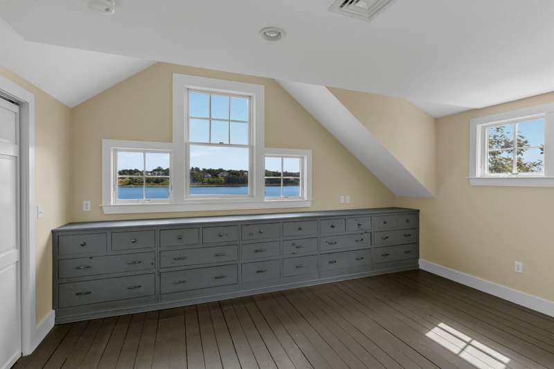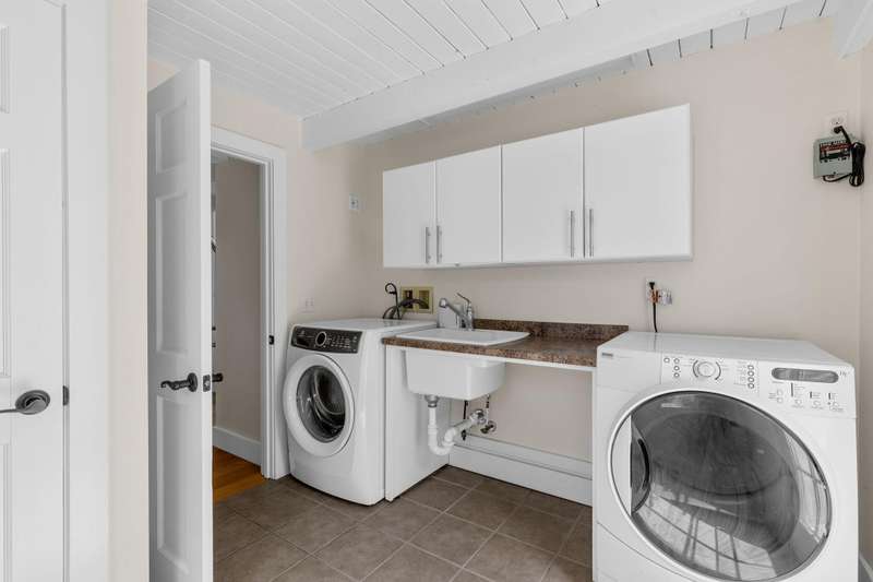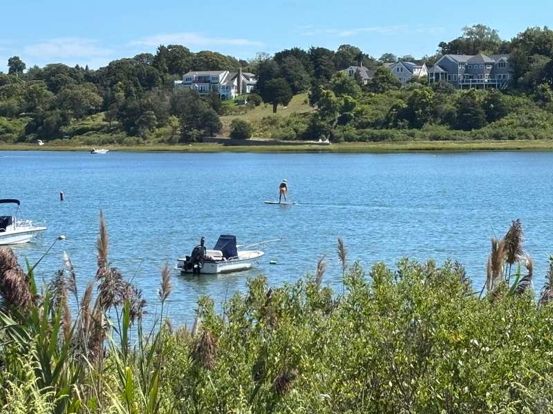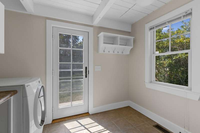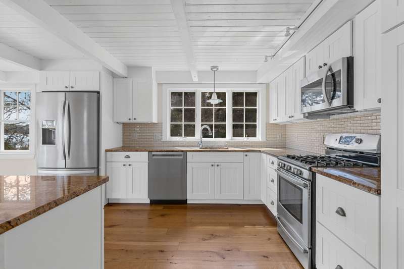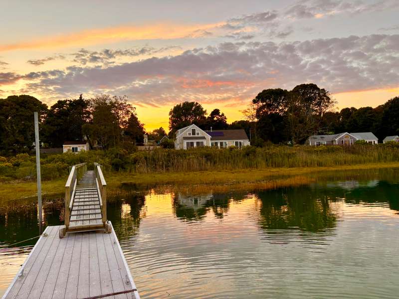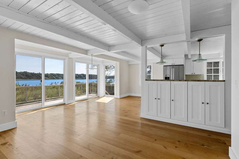 Embrace waterfront living, located on saltwater, this custom home offers a lifestyle defined by nature's beauty. Its relaxing, spacious and clean design features natural elements, an abundance of sunlight, and captivating water views from most every room. This home offers unrivaled access to a host of saltwater activities. Spend your days sailing, boating, kayaking, or paddleboarding right from your doorstep. Canoe over to Hopkins Island for various wildlife. 5 sliding glass doors span the back of the house, creating sun drenched natural light. Crisp white beamed ceilings, beautiful wood floors, a swanky kitchen is equipped with granite countertops, stainless appliances, a convenient pantry and space for your culinary pursuits. This is an eco-friendly yet efficient home with owned solar panels, heat pump hot water, and saltwater breezes all summer long. This exceptional property has natural gas heat and a gas fireplace, with central air providing effective climate control all year roun