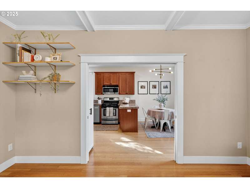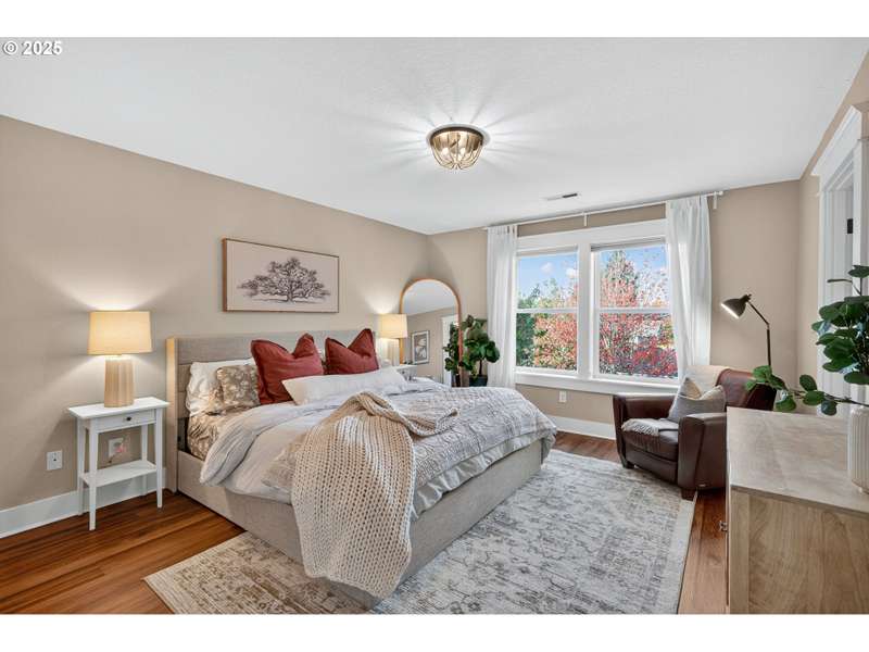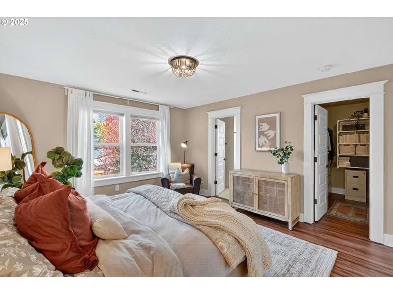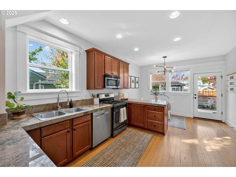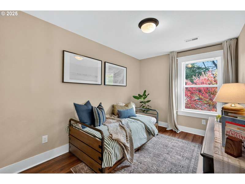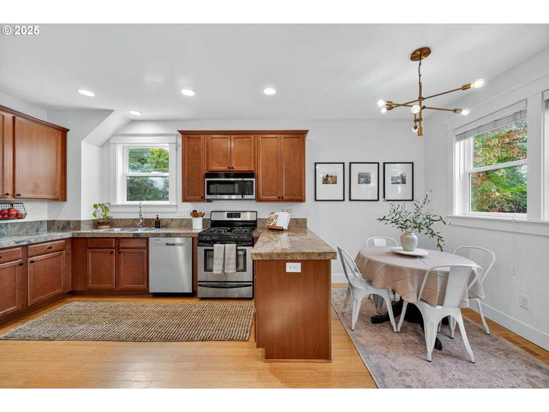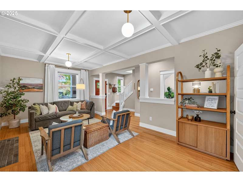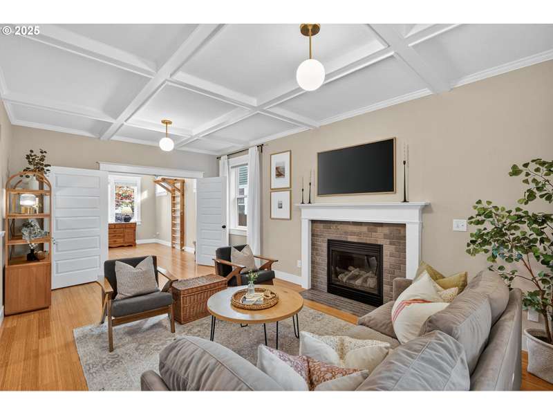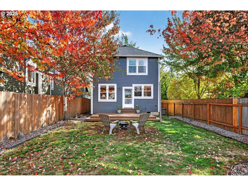 Experience the best of all worlds in delightful Woodstock! Earth Advantage Certified newer construction meets the charm of old-PDX, complete with a generously sized backyard. Built with modern convenience in mind and filled with thoughtful details including box beam ceilings, craftsman-style trimwork, bamboo floors and an inviting full-width front porch. Great floorplan with high ceilings, a cozy gas fireplace, formal dining room, and a spacious kitchen with plenty of storage, stainless steel appliances, eating area, and easy backyard access for seamless entertaining. All 3 bedrooms are upstairs including a large primary suite with a walk-in closet and tastefully designed attached bath. Energy efficient with a 9 out of 10 Home Energy Score! Low-E double-paned windows & an updated 96% high efficiency furnace. Air conditioning installed in 2023, exterior paint done in 2022, new LVP in bedrooms & new dishwasher. The private, fenced backyard offers plenty of space for gardening, playing, relaxation & entertaining! The partially finished garage makes a great office or workspace. Enjoy SE living with easy access to all of Woodstock’s amazing eateries, coffee shops & businesses, FoPo, and the newly renovated Mt. Scott Community Center. Come fall in love! [Home Energy Score = 9. HES Report at https://rpt.greenbuildingregistry.com/hes/OR10113617]