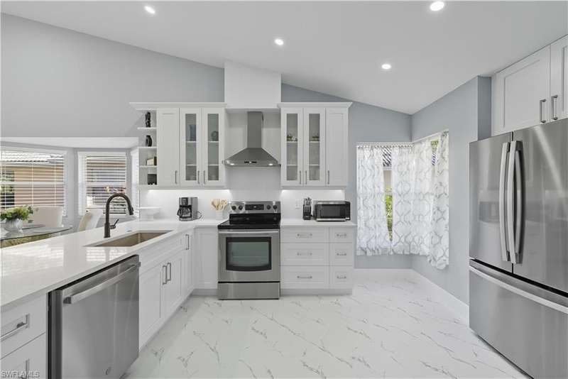 Welcome to your new oasis in beautiful Naples, where luxury meets comfort in this meticulously renovated 3-bedroom, 2-bathroom attached villa home. Nestled in a vibrant community that offers an exceptional lifestyle, this property is perfect for those seeking both relaxation and activity. The heart of this home is its inviting open concept layout, enhanced by high ceilings that create a light and airy atmosphere. This seamless flow between the living, dining, and kitchen areas makes it ideal for entertaining or simply enjoying day-to-day life. The showstopper of the home is undoubtedly the newly renovated kitchen. With modern appliances, elegant finishes, and ample counter space, it is ready for both culinary enthusiasts and casual cooks alike. This home boasts a luxurious primary suite, designed to be your private retreat. It features a king-sized bed, an ensuite bathroom complete with a soothing tub, a separate shower, and a walk-in closet for all your storage needs. Two additional guest suites, furnished with queen beds, ensure that family and friends will feel right at home, with a conveniently located guest bathroom for added privacy. Step outside to your lovely lanai, where you can unwind at the table and sitting area, perfect for morning coffee. This property has a washer, dryer, and WIFI available. As part of this vibrant community, you will enjoy access to a wealth of exceptional amenities, including: 16 tennis courts, 4 pickleball courts, basketball court, two pools, an outdoor whirlpool, Café and Pro Shop. There are also a variety of social events in season including monthly holiday and theme parties, book clubs, water aerobics, Tai Chi, art workshops, a lecture series and regular bridge, poker and chess groups. The Poolside Café is an indoor-outdoor Mediterranean-inspired café and bar. WTC offers private and group lessons for all ages and ability levels. It is centrally located allowing all that Naples has to offer. From quaint shopping areas, a long stretch of white sand beaches and outstanding restaurants.