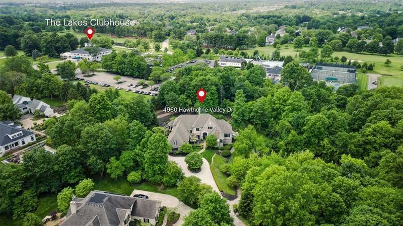 Welcome to 4960 Hawthorne Valley Drive, a captivating estate tucked away in one of Westerville's most coveted wooded enclaves. Backing directly to Highland Lakes, a private wooded path leads from your backyard to the serene beauty of The Lakes - a rare and seamless connection to this exclusive community.Built in 2006 and extensively renovated in 2022, this custom home blends luxury and privacy on a lush 1.99-acre lot. From the moment you arrive, you'll be captivated by the timeless design and meticulous attention to detail. The expansive floor plan features 5 bedrooms and 8 bathrooms, perfect for both everyday comfort and refined entertaining. The gourmet kitchen is a showpiece, with high-end appliances, custom cabinetry, and dual islands?ideal for hosting and culinary creations. Soaring ceilings, rich moldings, and sunlit spaces define the elegant living and dining areas, while a cozy family room with fireplace offers a welcoming retreat. The primary suite is a true sanctuary, complete with a spa-like bath, dream-worthy walk-in closet, and private deck overlooking the peaceful outdoor setting. Each additional bedroom includes its own en-suite bath for comfort and privacy.The finished walk-out lower level is a refined and inviting extension of the home, designed with both functionality and wow-factor in mind. Flooded with natural light and crafted with high-end finishes, this expansive space offers multiple zones for entertaining, recreation, or everyday living, all with walk-out access to the private, wooded backyard. A professional-grade bar is perfect for gatherings, while the unique indoor skateable hockey rink provides year-round fun.Outdoors, the landscaped grounds, expansive patio, and large, tree-lined yard provide a serene backdrop for entertaining or relaxing. An attached 3-car garage and a large outbuilding offer space for hobbies, vehicles, or storage. This extraordinary home offers a rare blend of elegance, recreation, and privacy!