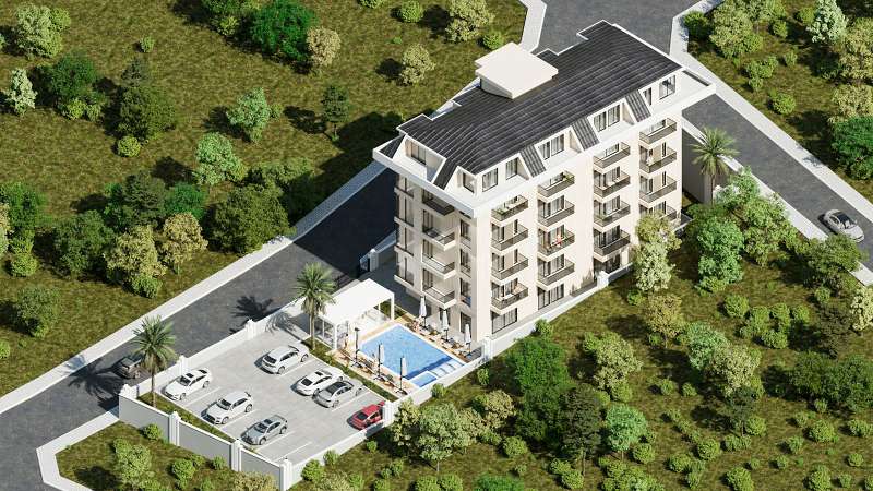 The apartments for sale in Alanya are part of a single-block complex in the Dikmen neighborhood. The complex is located 200 m from the beach, 220 m from the nightclub, 500 m from the seafood markets, 1.40 km from Cleopatra Beach, and 42 km from Gazipasa International Airport.