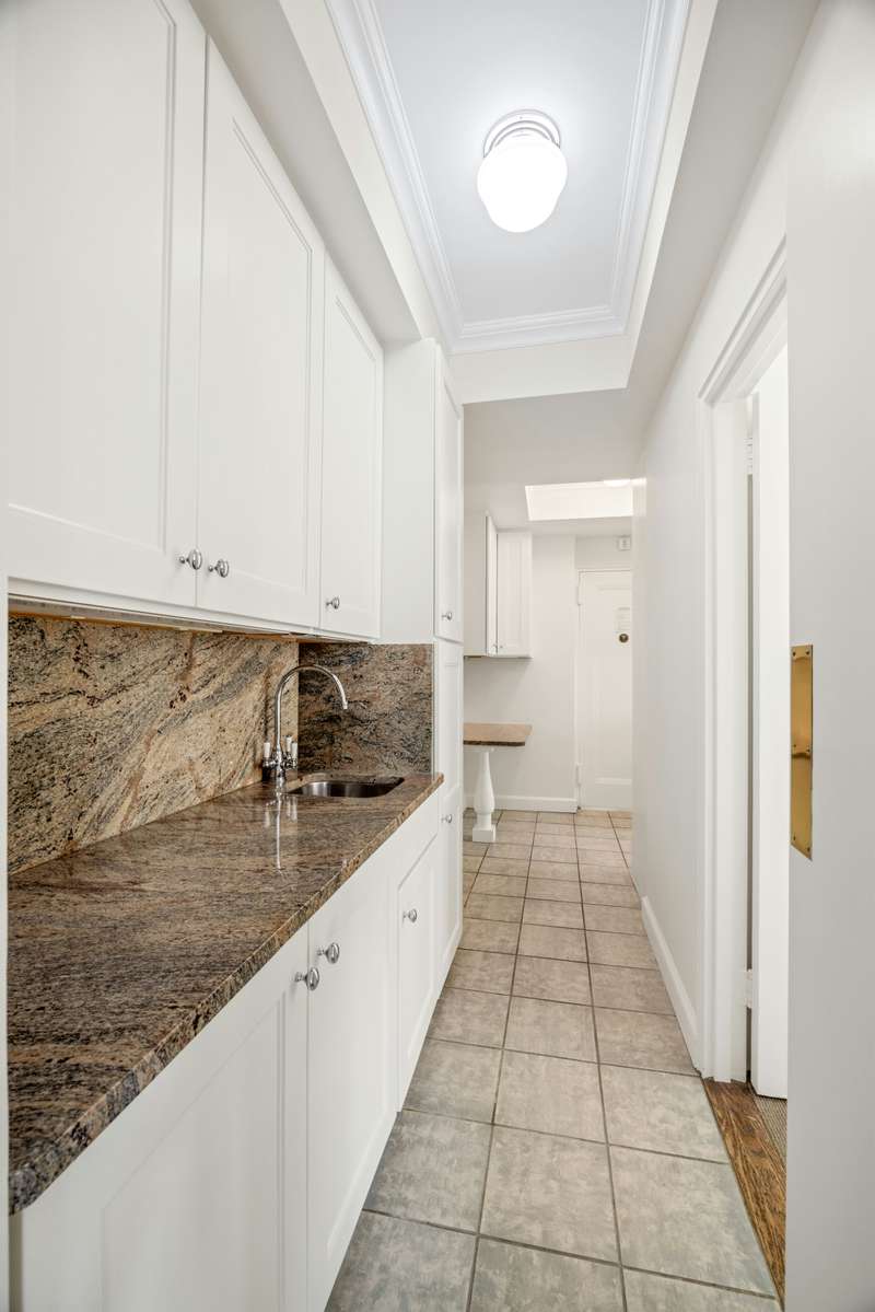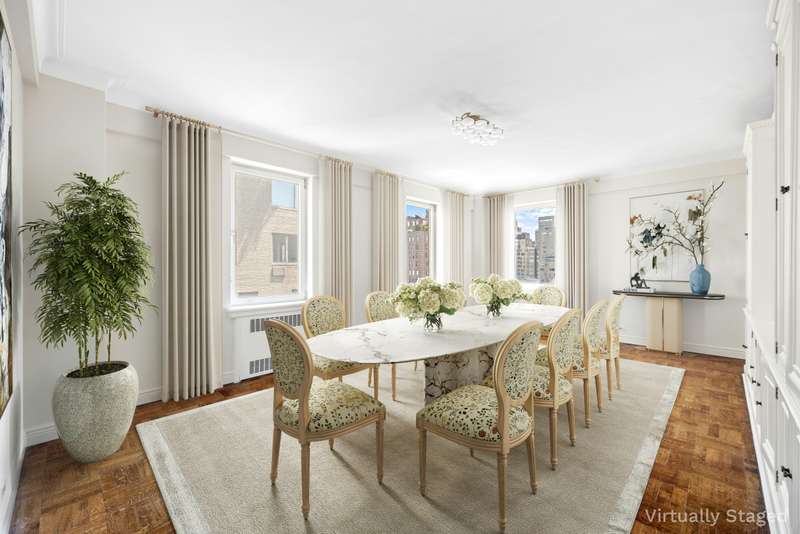 An elegant 20 Ft. gallery leads to a gracious and impressive 31 x 15 Ft. living room with open southern exposures and sweeping distant views of midtown Manhattan. At the far end of the gallery is the oversized corner formal dining room which can easily serve as a dining room/library. The modernized kitchen and staff room with private bathroom are adjacent to the dining room. Adjacent to the kitchen is the washer/dryer.