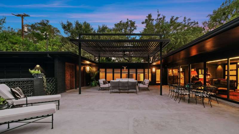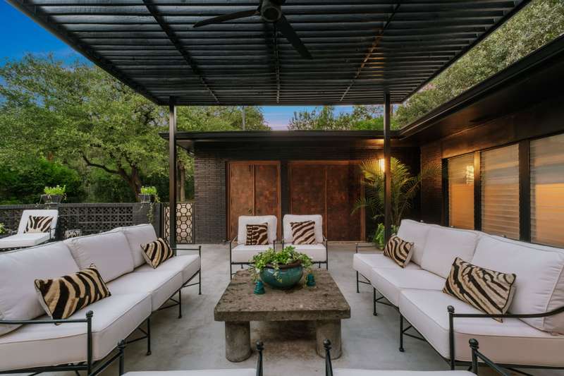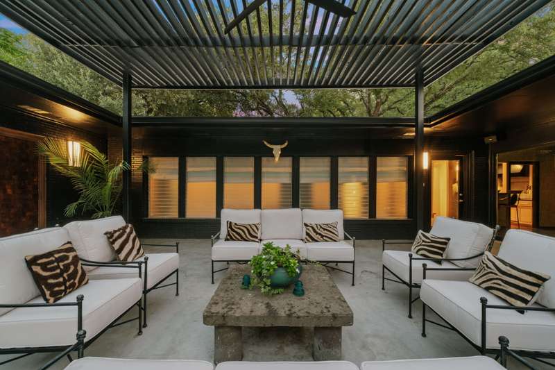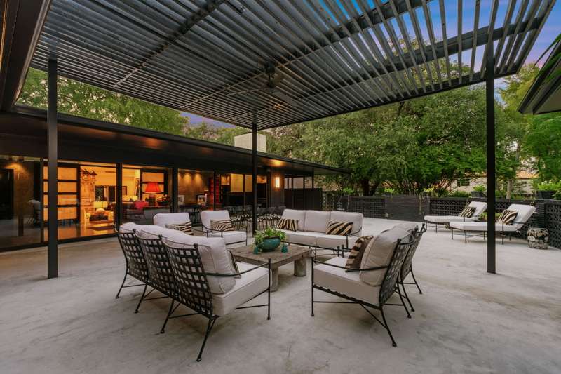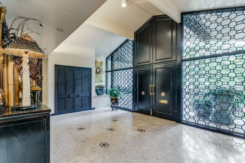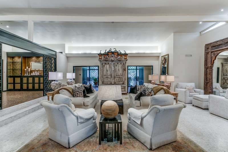 Dramatic one story contemporary styling offers oversized rooms, fabulous flow and a split bedroom arrangement that adapts to many needs. Terrazo at the entrance leads into an ultra high ceiling in the great room. Two steps up is the huge dining room with parquet flooring of all different woods. A nice sized family room with a fireplace and wet bar have an expanse of windows looking out to a gorgeous patio! The master suite and large study are on one side of the home and another large bedroom is behind the totally remodeled island kitchen. Down the hallway is another en-suite bedroom. Large 3 car garage and .46 acres. - 11/10/2025 3:17:54 AM