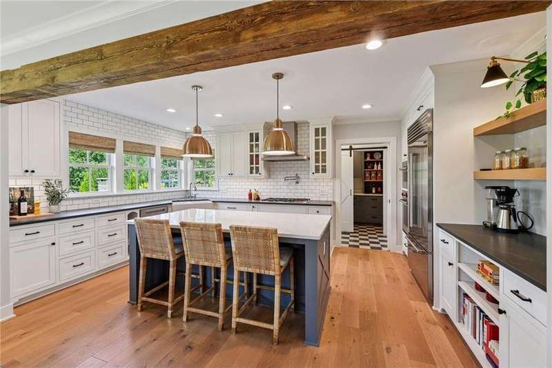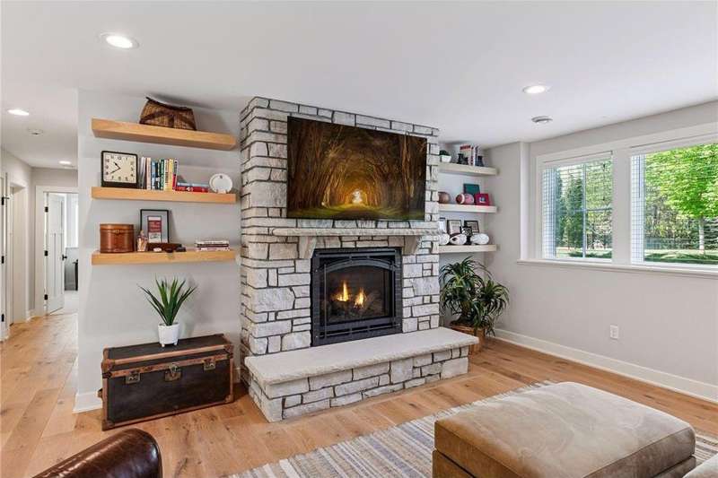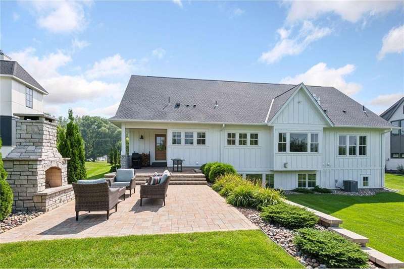 From the moment you step into this Modern Farmhouse, you’ll notice the thoughtful design & exquisite finishes that set this David Charlez Designs home apart. It features built ins galore, beautiful solid white oak floors on both levels, four fireplaces (three indoors) and special touches in every room, from solid wood beams and barnwood accents to wainscoting and shiplap. Nestled on one of Lakeville's most sought-after streets w/ beautiful homes and spacious private lots, you can walk or bike to schools, shopping, restaurants & trails. The chef-inspired kitchen is a true showstopper, featuring custom cabinetry, high-end appliances & a striking blend of quartz & soapstone countertops. A matching butler’s pantry offers generous prep & storage space—perfect for hosting. The open layout flows seamlessly into the dining area w/ custom buffet & a warm, inviting living room centered around a gas fireplace, solid wood beams & a cozy window seat. Retreat to the serene primary suite boasting its own gas fireplace and a spa-like bath complete w/ heated floors, a soaking tub, dual shower heads & a huge walk-in closet w/ custom built-ins. A private main-level laundry room off the large mudroom adds everyday ease & convenience. The lower level is ideal for entertaining w/ a spacious family room with gas fireplace, built-in full-size bar with custom zinc top & a media center for audiophiles. There are also two additional bedrooms sharing a Jack-and-Jill bath, a separate half bath, dedicated office for those who work from home, a flexible bonus room and generous storage. Step outside to an expansive patio w/ beautiful custom-built wood-burning fireplace overlooking the large, flat backyard. The garage features a tandem third stall for bikes, golf carts, bikes or car storage. Every detail has been carefully curated. Schedule your private showing today—homes w/ this level of thoughtfulness, practicality and quality are a rare find!