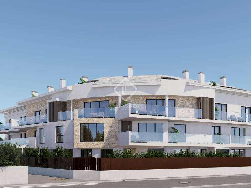 Introducing this new residential development with 17 exclusive homes with 2, 3, or 4 bedrooms, all equipped with terraces, garage, storage units, and bicycle parking. Located in a modern residential complex, the two three-storey blocks offer ground floor, first-floor, and duplex penthouse options, making it possible to enjoy the Spanish sunshine year-round. Choose from three different interior styles: Contemporary, Timeless, or Nature, all with high-quality finishes from Porcelanosa. Each kitchen is fully equipped with top-of-the-line appliances, including an induction cook top, microwave, electric oven, integrated dishwasher and refrigerator, and a decorative stainless steel extractor hood. Bathrooms are designed with premium porcelain stoneware, energy-saving taps, and resin shower bases, along with stylish wall-hung toilets and dual flush systems. The complex includes a range of common services, such as a communal garden, swimming pool (with a separate children's area), bike racks, and a parking garage with pre-installed electric car charging. Additionally, all homes feature air conditioning (hot/cold) in all bedrooms and lounges, underfloor heating, and an aerothermal heat pump for efficient hot water and heating. Completion of construction is expected by the end of 2027, with work beginning in June 2025. Please contact us about this opportunity to own a high-quality home in an exceptional location.