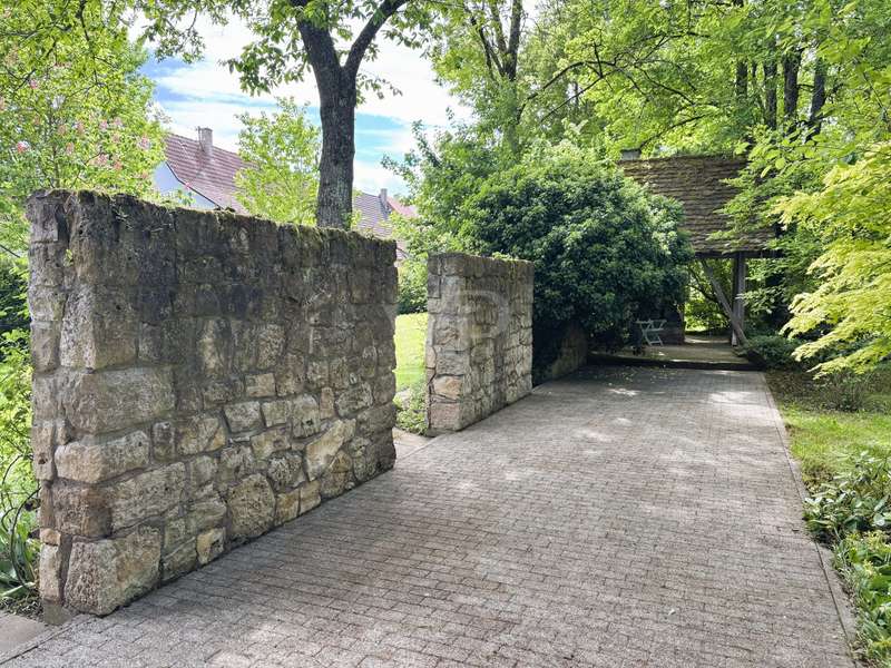 This well-kept property offers enough space for families and discerning buyers who value quality and individuality on a generous living area of approx. 319 m². Built in 1976, the detached family home is in very good condition, which was further improved in 2009 through extensive modernization, including the heating system. The property is situated on a spacious plot of around 4591 m², which impresses with its park-like character and exceptional tree population. The plot is fully fenced and offers peace and privacy, with access secured by land register. In the garden there is a large covered barbecue area, a spacious terrace and an open shelter, making the outdoor areas perfect for social occasions. The house has a total of ten rooms, six of which are bedrooms, and two bathrooms spread over two floors. The spacious entrance area leads directly into the foyer with gallery on the upper floor, which offers an appealing view of the open architecture. The property is furnished to a high standard: Norwegian slate flooring on the first floor and wooden floorboards on the upper floor create a pleasant living ambience. A wood-burning stove, which was installed in 2007, provides cozy warmth on cold days. The kitchen is equipped with a Poggenpohl fitted kitchen including large electrical appliances from 2007, which leaves nothing to be desired. All windows are fitted with roller shutters, which further enhance living comfort. An intercom system to all rooms on the upper floor complements the technical equipment of the house. The property has a modern heating system consisting of oil central heating in combination with underfloor heating. This ensures efficient heat distribution and low operating costs. A fiber optic connection is also available, which also keeps the property digitally up to date. In addition to the living space, the house offers expansion reserves in the attic, which can be used for further living or work spaces if required. The offer is rounded off by a double garage with a workroom and an impressive vaulted cellar. There is also the option of acquiring the neighboring property Lichtenstein 10 in Betra, which offers additional flexibility, e.g. for extended use or as an investment property. The property is also ideal for keeping animals and there is the possibility of using additional leased land. Whether for families who need a lot of space, for buyers looking for a prestigious home or planning commercial use - this house offers a wide range of possible uses in a quiet location that nevertheless ensures good accessibility via the A81 freeway. A viewing is well worthwhile to see the advantages of this unique property for yourself.