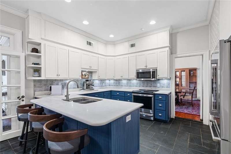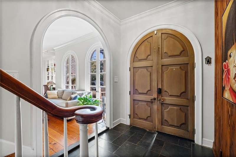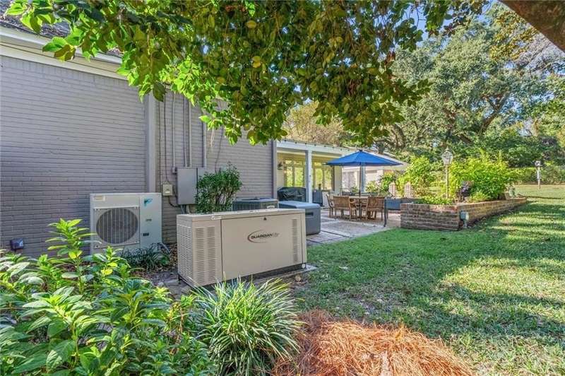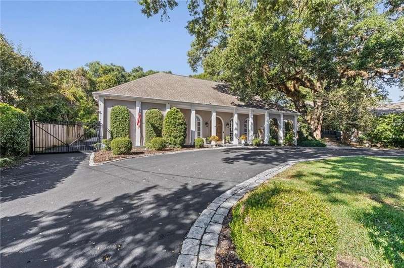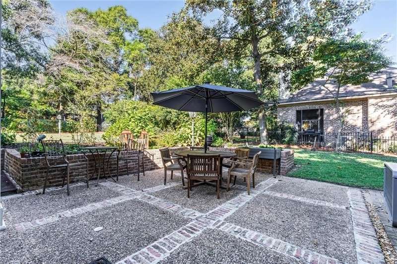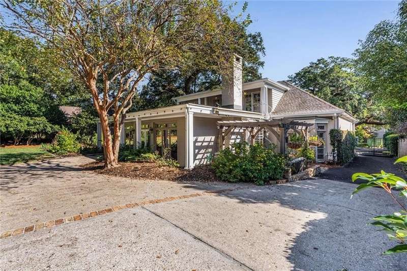 Welcome to this stunning 1½-story French Provincial home nestled in the heart of the desirable Spring Hill neighborhood. With 3,917 sq. ft. of thoughtfully designed living space, this residence blends timeless architectural elegance with modern comfort and convenience. An inviting covered front porch with arched windows and a double-door slate-floored foyer set the tone for the sophistication within. The main level offers 10-foot ceilings, a gracious living and dining room with French doors opening to a spacious brick patio, perfect for entertaining or relaxing outdoors. The primary suite is located on the main floor, featuring a walk-in closet and a spa-inspired ensuite bath with double vanity, soaking tub, and oversized shower. A nearby study or fifth bedroom also includes its own ensuite bath, ideal for guests or a home office. The kitchen showcases Alabama marble countertops, newer energy-efficient appliances, ample cabinetry, a breakfast bar, and a bright breakfast area. A separate laundry room offers additional cabinetry and storage. The expansive family room is the heart of the home, complete with a fireplace, wet bar, and a wall of windows overlooking the lush, fenced backyard, garden, and pergola-covered outdoor area. Upstairs, you will find three spacious bedrooms, a bonus room, a hall bath, and generous walk-in attic storage. Each upstairs bedroom enjoys views of the backyard and access to an exterior spiral staircase leading down to the patio. Additional highlights include a detached double garage with large workshop area, irrigation system, whole-house generator, and magnificent live oak trees framing the property. Combining classic French design with modern updates and outdoor beauty, this property offers a rare opportunity to own one of Spring Hill's most graceful residences. Year built is unknown.