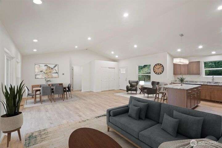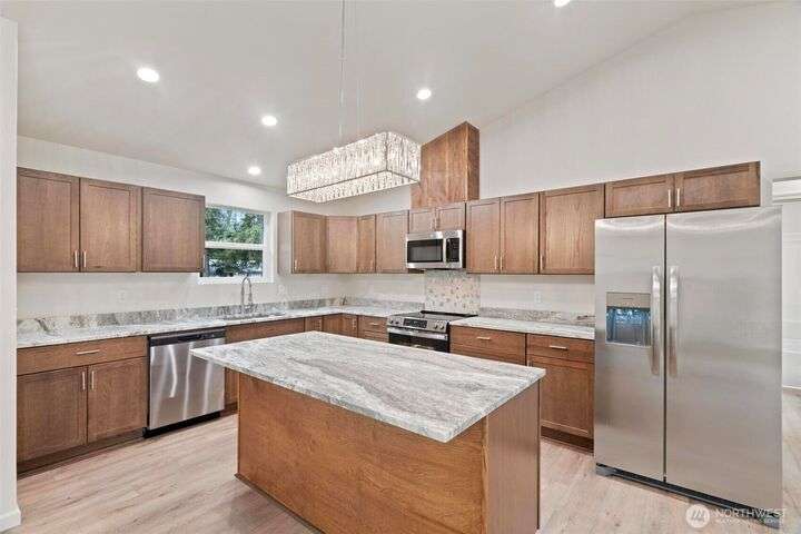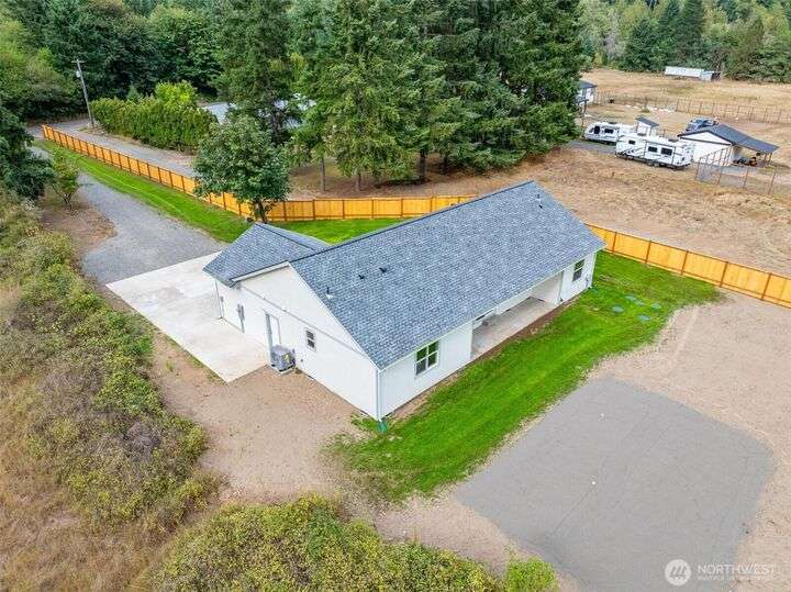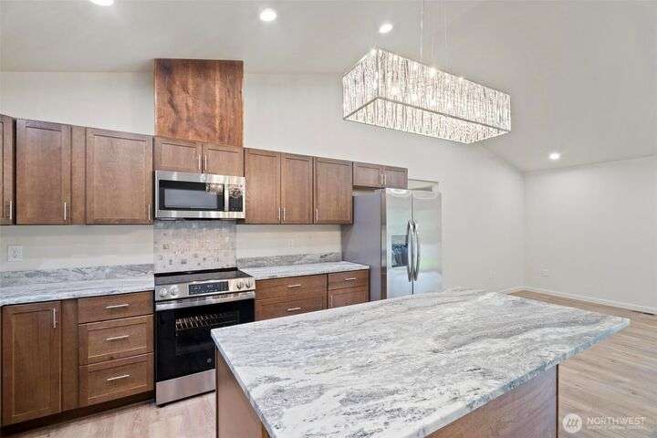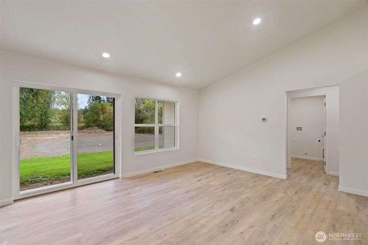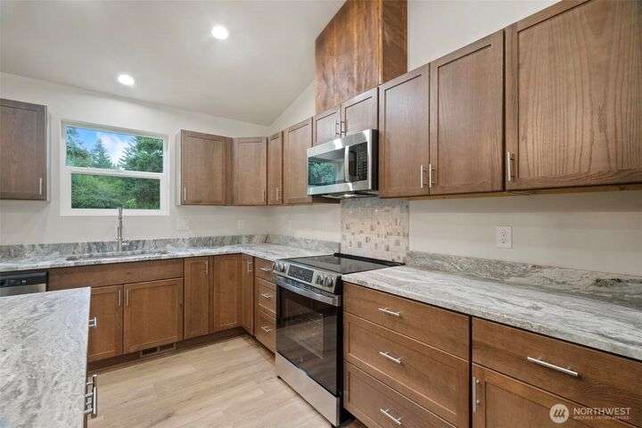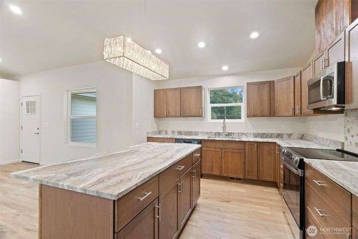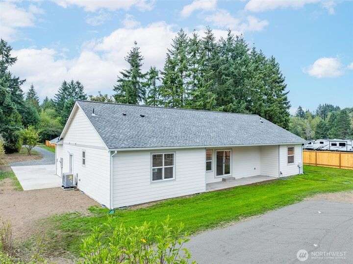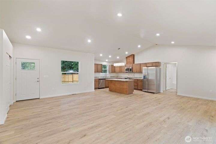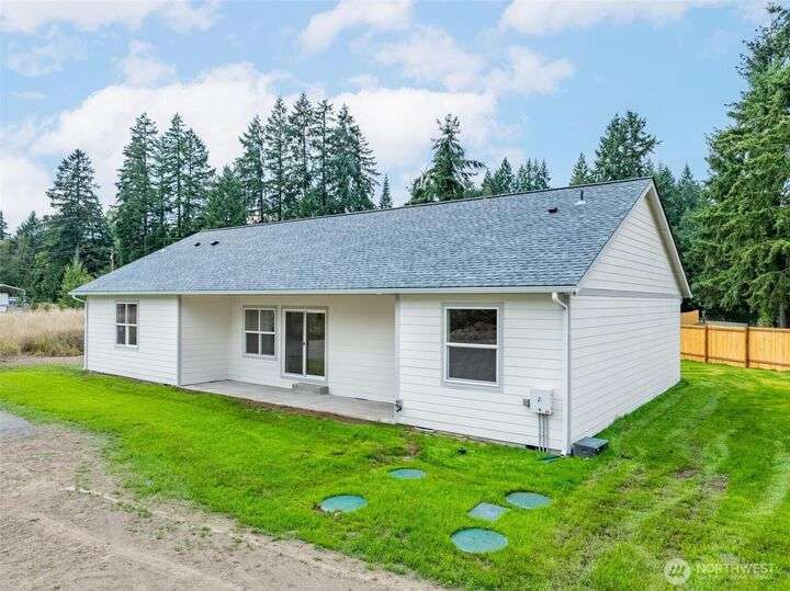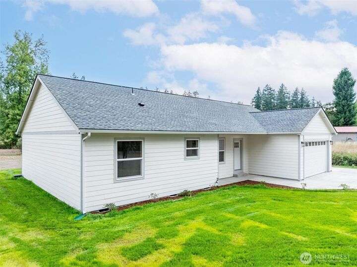 Custom Built, Brand New 3Bd 2Bth, single-level home on half acre lot. Open concept home features vaulted ceilings & waterproof LVP flooring throughout. Kitchen w/new modern color cabinetry, island, brushed granite counters & backsplash. Stainless appliances including dishwasher, stove, fridge & microwave. Stainless undermount sink w/disposal. Primary suite on opposite side of home from other bedrooms, has attached bath w/double sinks, custom tiled 60in walk-in shower & walk-in closet. Energy efficiency features including heat recovery ventilation, extra attic insulation, window u-factor .24, hybrid water heater, high efficiency forced air heating & ac. Wired for Fiber Internet. Large concrete driveway w/side trailer parking. No HOA.