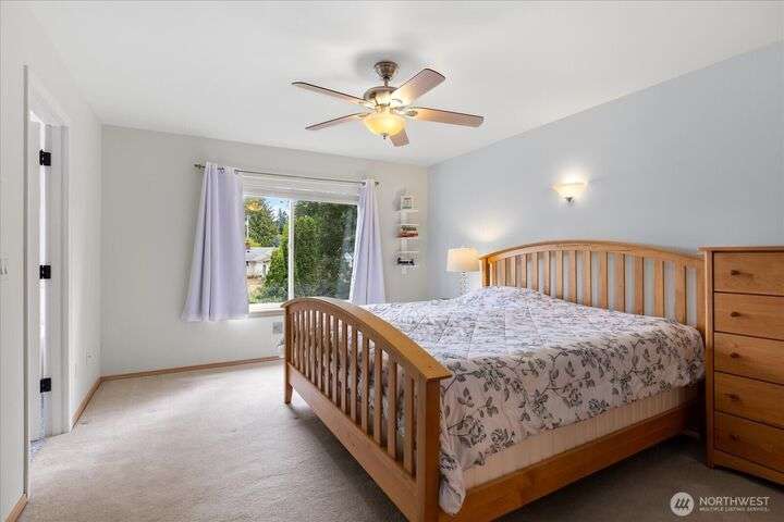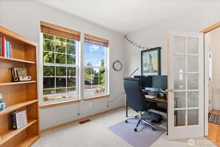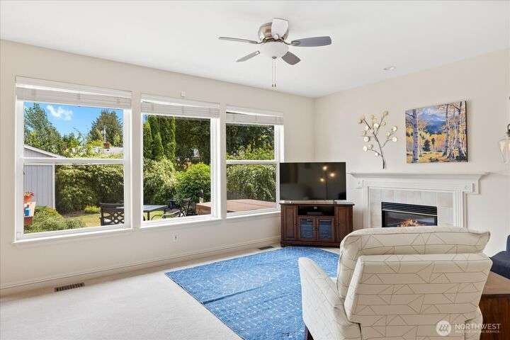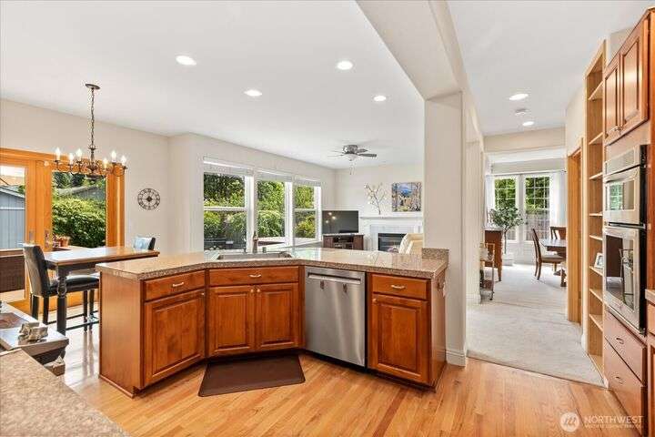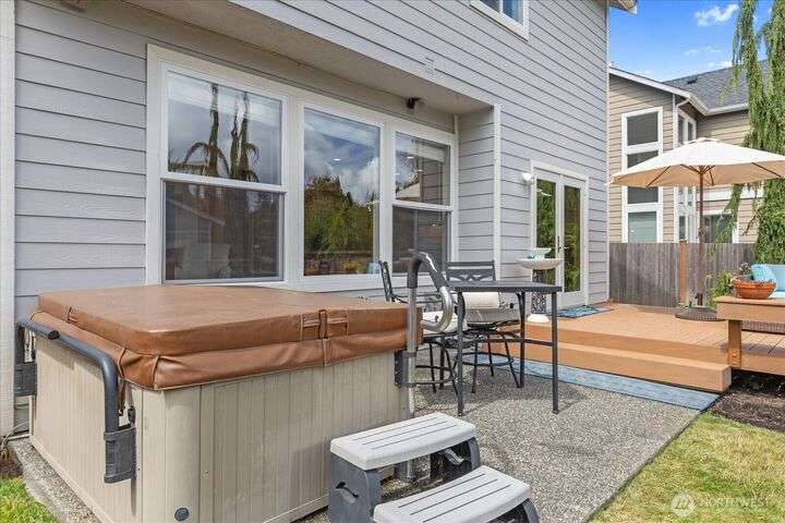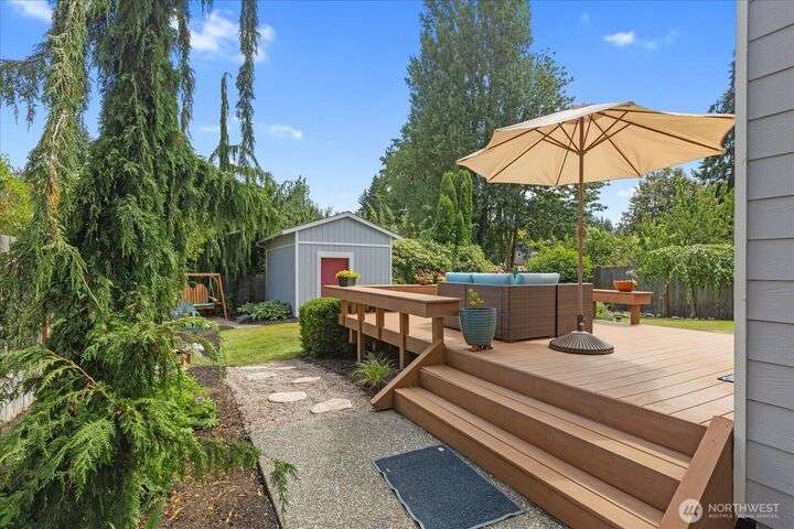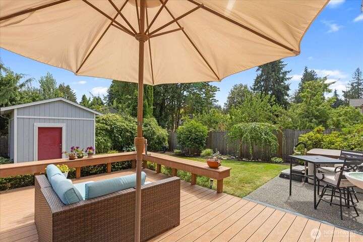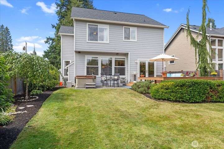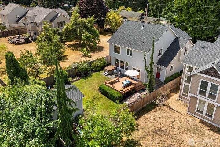 Inviting, light and spacious 2 story home with room for all! Living room w/vaulted ceiling, gas fireplace; bountiful dining room for gatherings, separate office. Newer appliances in kitchen with eating area adjacent to family room with 2nd gas fireplace. Large laundry room, 1/2 bath downstairs. Large primary bedroom, oversized walk-in closet, remodeled primary bath upstairs plus 3 more bedrooms and large full bath. Enjoy the landscaped, well-maintained yards w/generous deck, sprinklers, garden shed, hot tub; creating an oasis of peace and privacy. 2 car garage w/overhead storage. 1998-built home just minutes to downtown Edmonds, shops, ferry and transportation! Roof 2022. Pre-inspected. Central A/C.