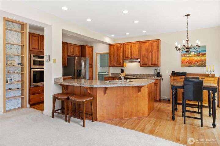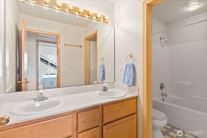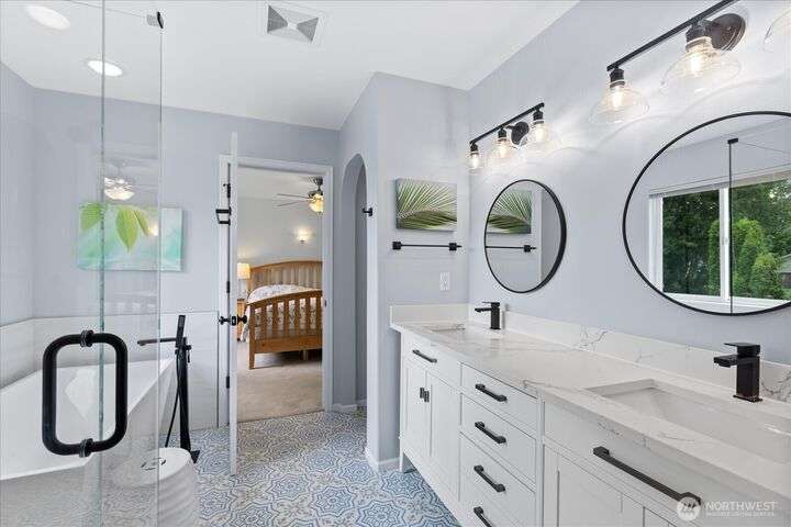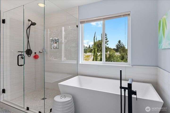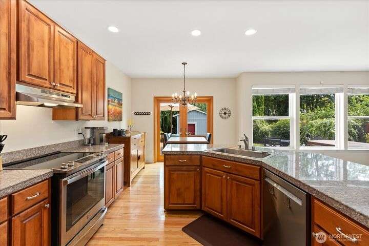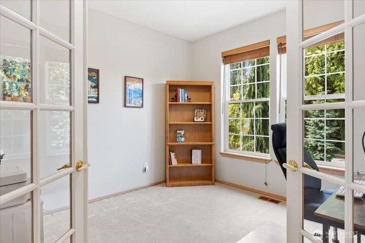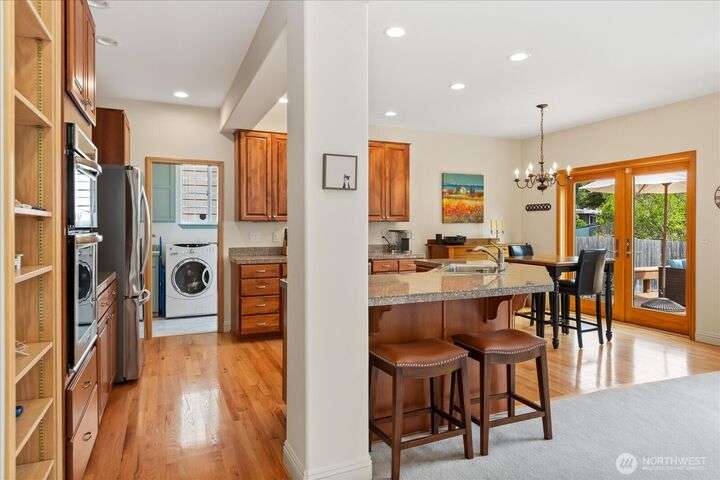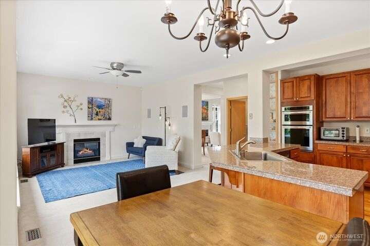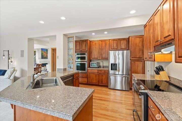 Inviting, light and spacious 2 story home with room for all! Living room w/vaulted ceiling, gas fireplace; bountiful dining room for gatherings, separate office. Newer appliances in kitchen with eating area adjacent to family room with 2nd gas fireplace. Large laundry room, 1/2 bath downstairs. Large primary bedroom, oversized walk-in closet, remodeled primary bath upstairs plus 3 more bedrooms and large full bath. Enjoy the landscaped, well-maintained yards w/generous deck, sprinklers, garden shed, hot tub; creating an oasis of peace and privacy. 2 car garage w/overhead storage. 1998-built home just minutes to downtown Edmonds, shops, ferry and transportation! Roof 2022. Pre-inspected. Central A/C.