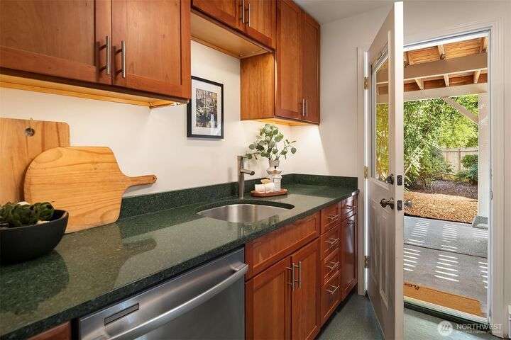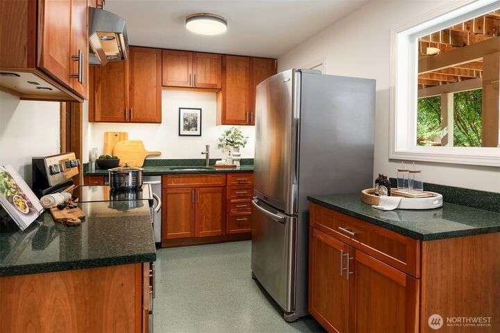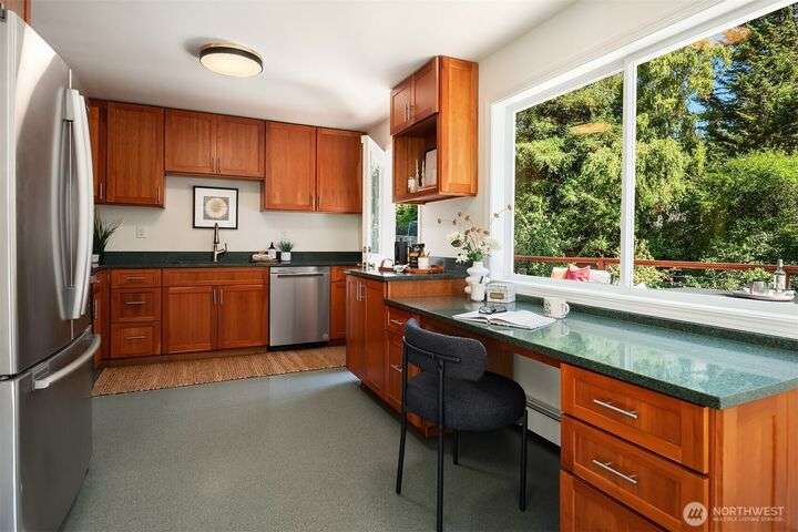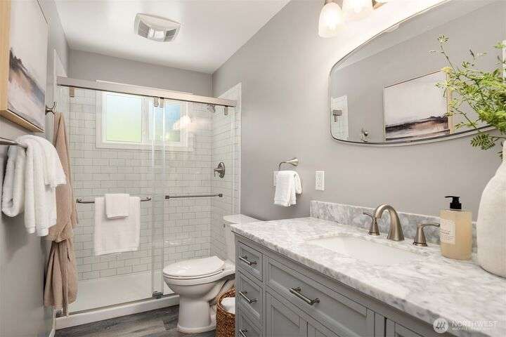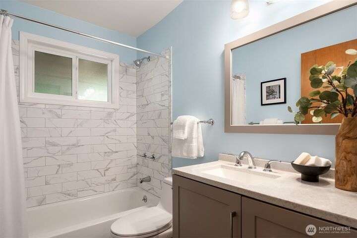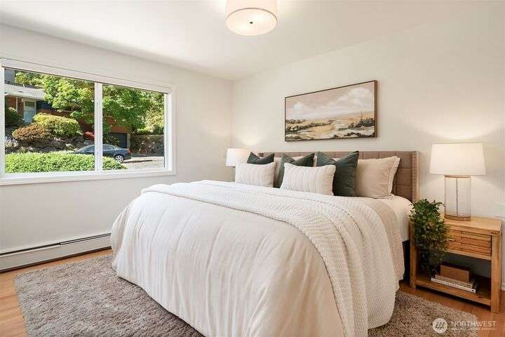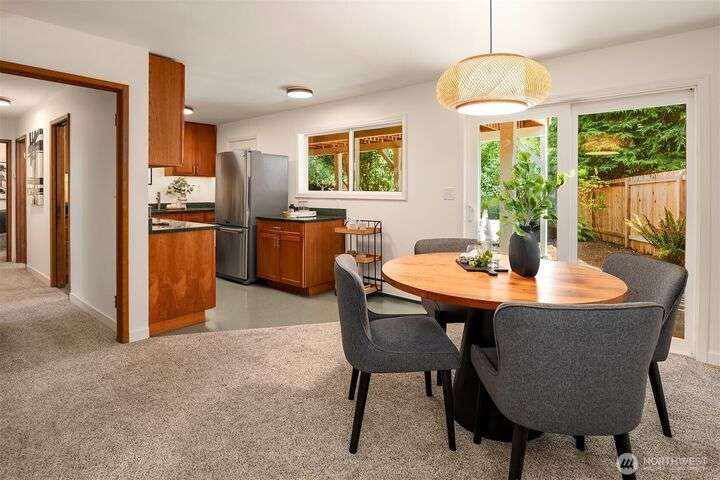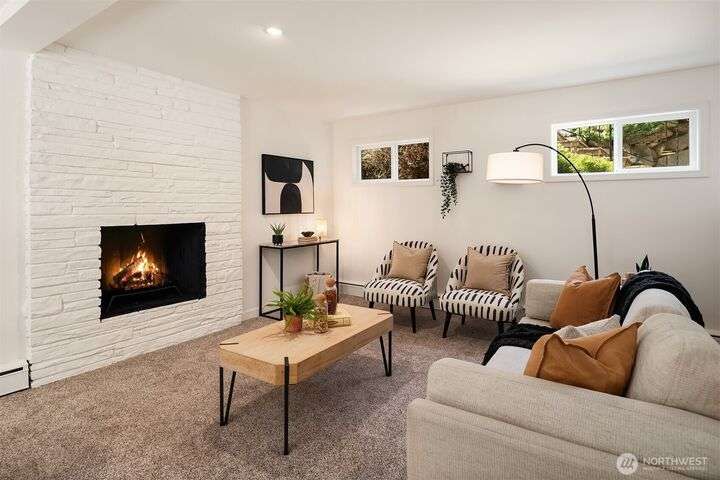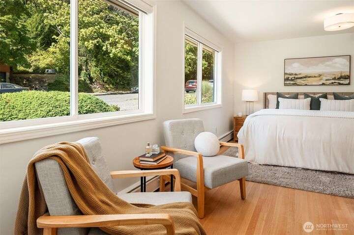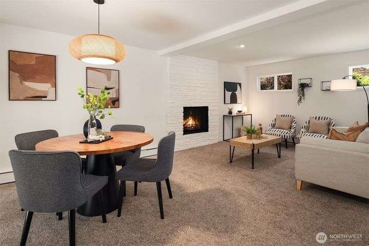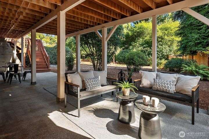 Just a block or so from the enchanting shoreline of Lowman Beach, discover this refreshed Mid-Century sited on a rare 1/4 acre city lot. This home really delivers with 2 bedrooms, living, dining, full kitchens + a wood burning fireplace on each level ~ offering effortless access to a deck or patio with serene and private backyard views. Fantastic indoor/outdoor synergy, perfect for entertaining. The inviting main level is bathed in natural light, showcasing modern updates and beautifully refinished hardwood floors; while maintaining the vintage 50's charm. Deck and patio span the entire east side of the home, with access to hot tub, 2 car garage and mature gardens. Nearby Lincoln Park, a West Seattle gem, offers 135 acres to explore!